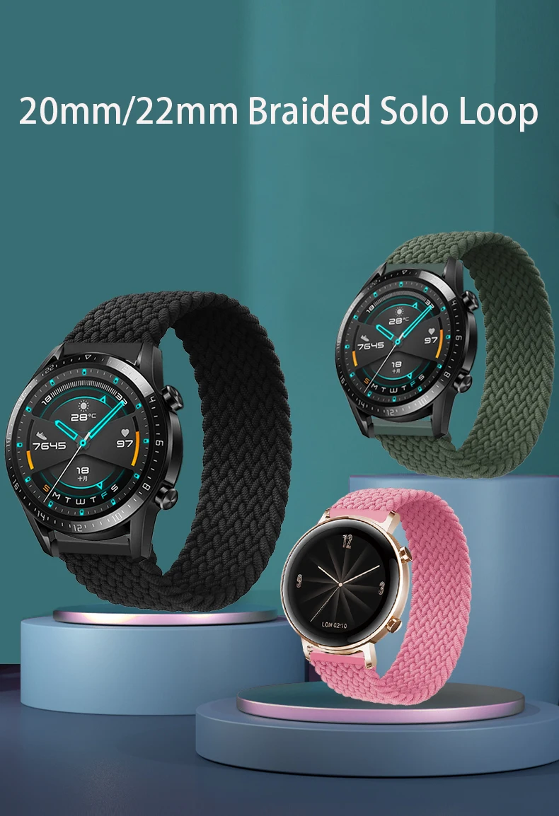 Плетеная соло-петля для Amazfit GTS 2 2e GT 2 Mini GTR 42 мм 47 мм ...