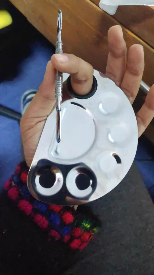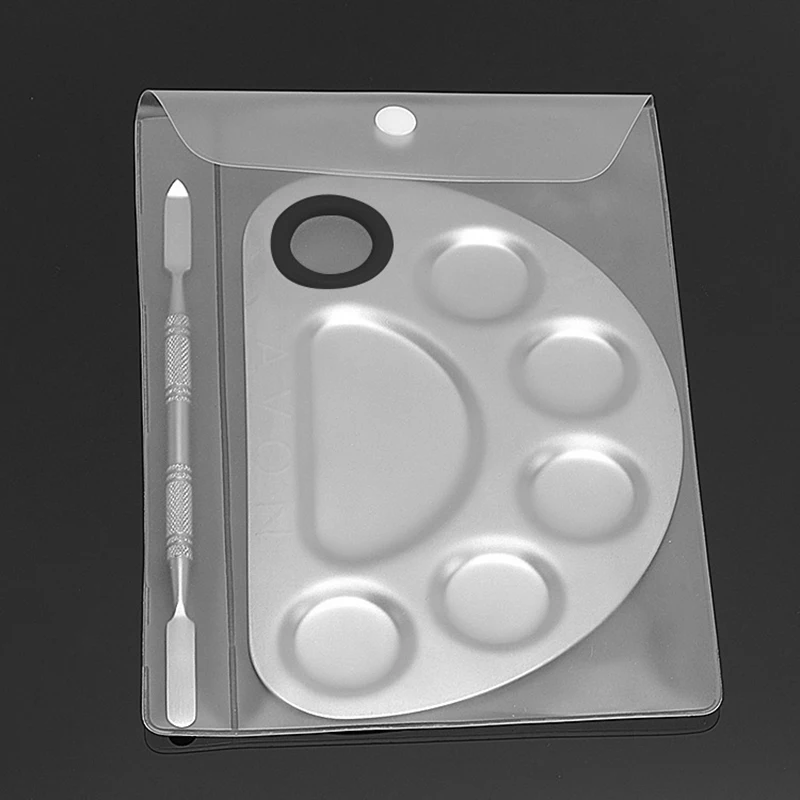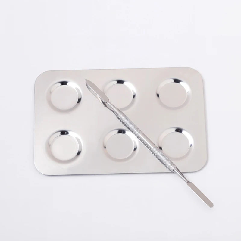 Смеситель для макияжа из нержавеющей стали, пластина для смешивания лака для нейл-арта, для тона, теней, палитра с лопаткой, инструменты для красоты