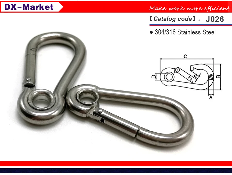 304 316 пружинный карабин из нержавеющей стали с кольцом m4 m5 m6 m7 m8 m9 m10 m11 m12 карабин с проушиной, J026