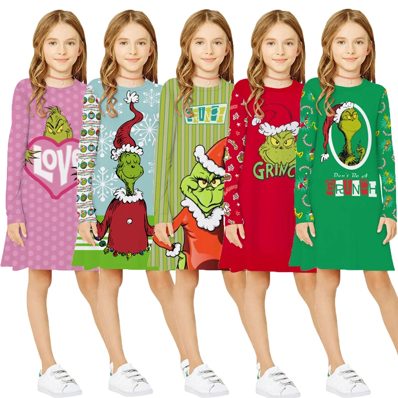 Платье для девочек большого размера на Хэллоуин, весна-осень, рождественский стиль, платье для детской домашней вечеринки с изображением снеговика, Санта-Клауса, Единорога