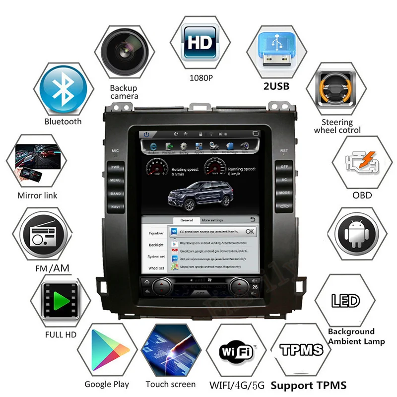 Автомобильное радио на Android 10 для toyota prado lexus GX 470, Dvd-плеер, GPS, Авторадио, навигация, вертикальный экран, стиль Тесла, 10,4 дюйма, 2002 - 2009Об этом товаре