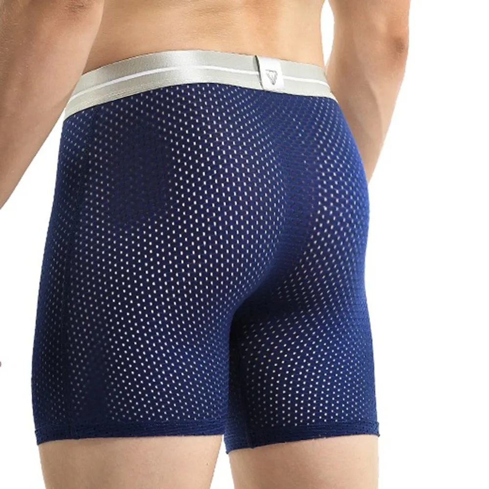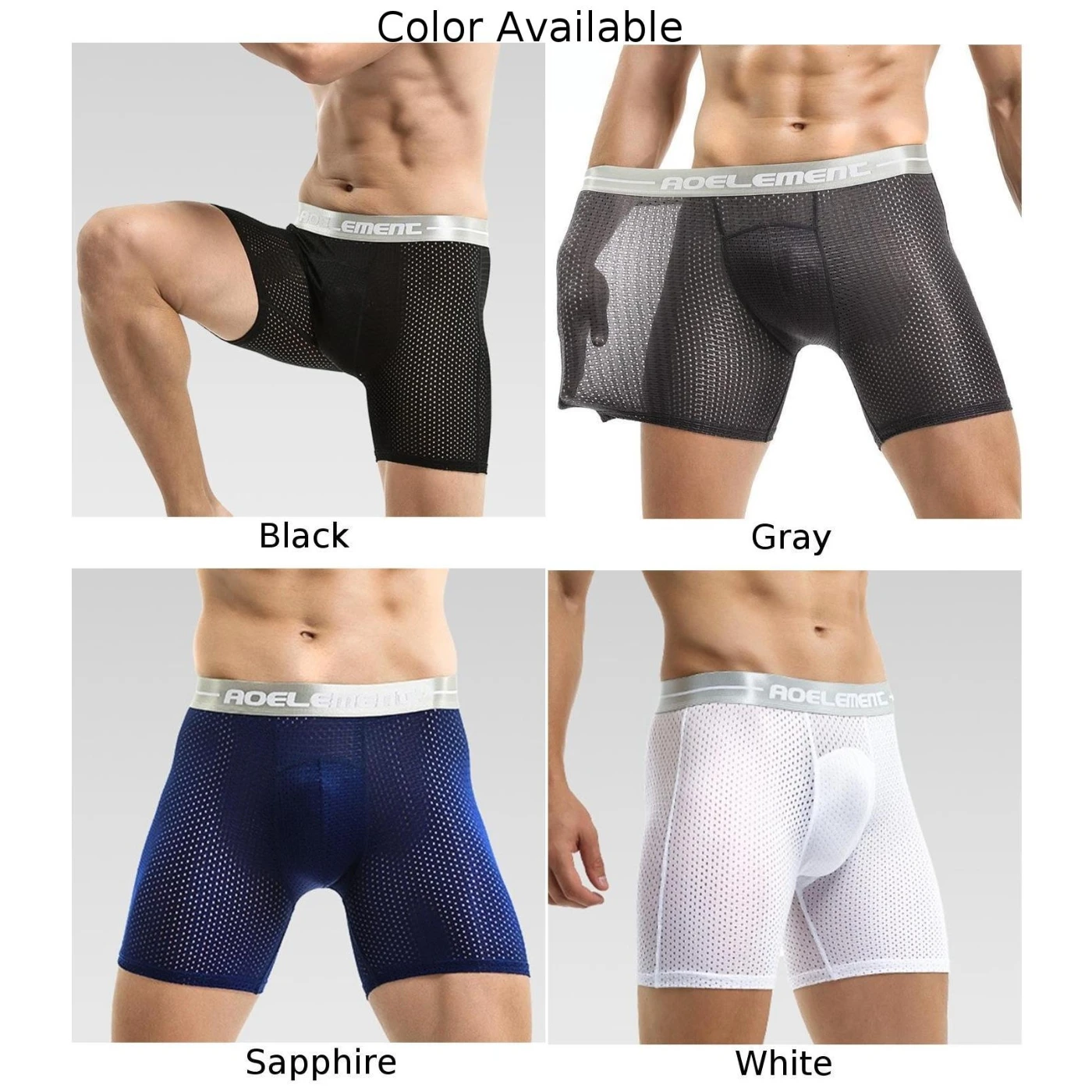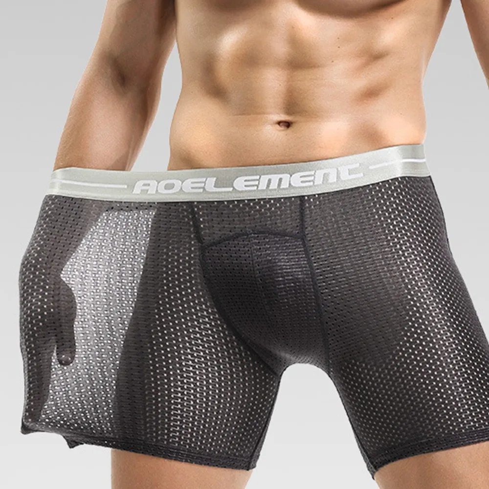 Трусы-боксеры мужские сетчатые, быстросохнущее нижнее белье, длинные штаны, U-образный выпуклый мешочек, бикини, A50
