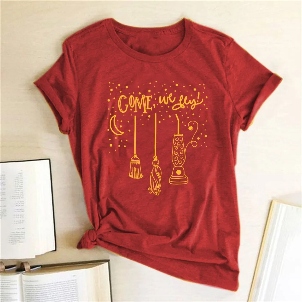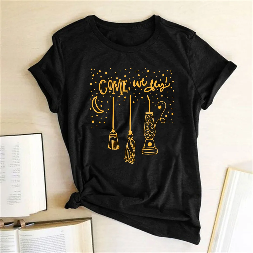 Женская забавная Футболка с принтом «Come We Fly», футболка с коротким рукавом на хеллоуин для женщин, футболка с изображением ведьмы Harajuku, женская футболка Y2k Mujer