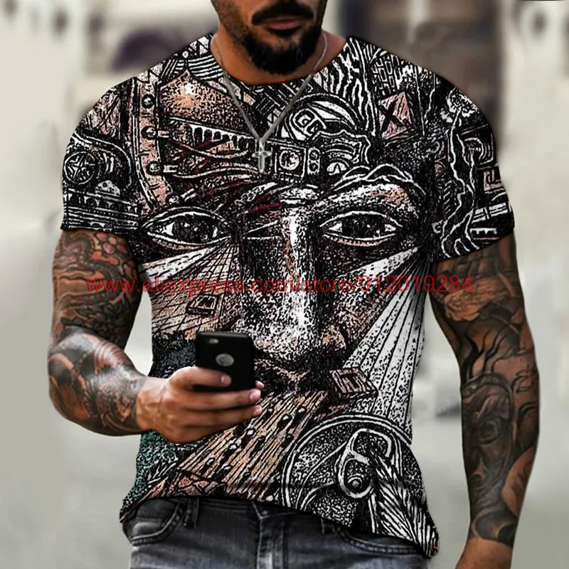 Мужская Повседневная футболка с коротким рукавом, модная уличная футболка в стиле ретро и хип-хоп с 3D-принтом и круглым вырезом, лето 2021