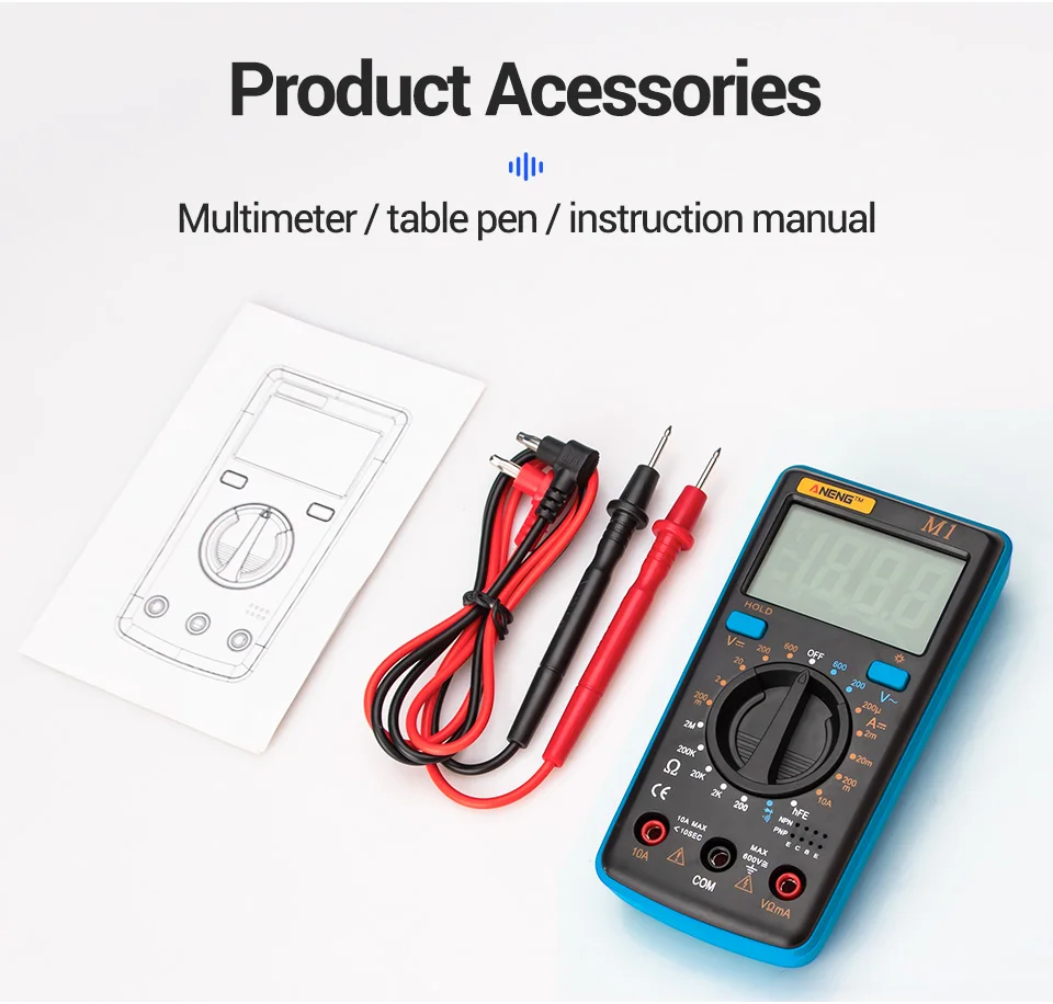 1 * Цифровой мультиметр1 * Тестовые провода1 * Руководство пользователя