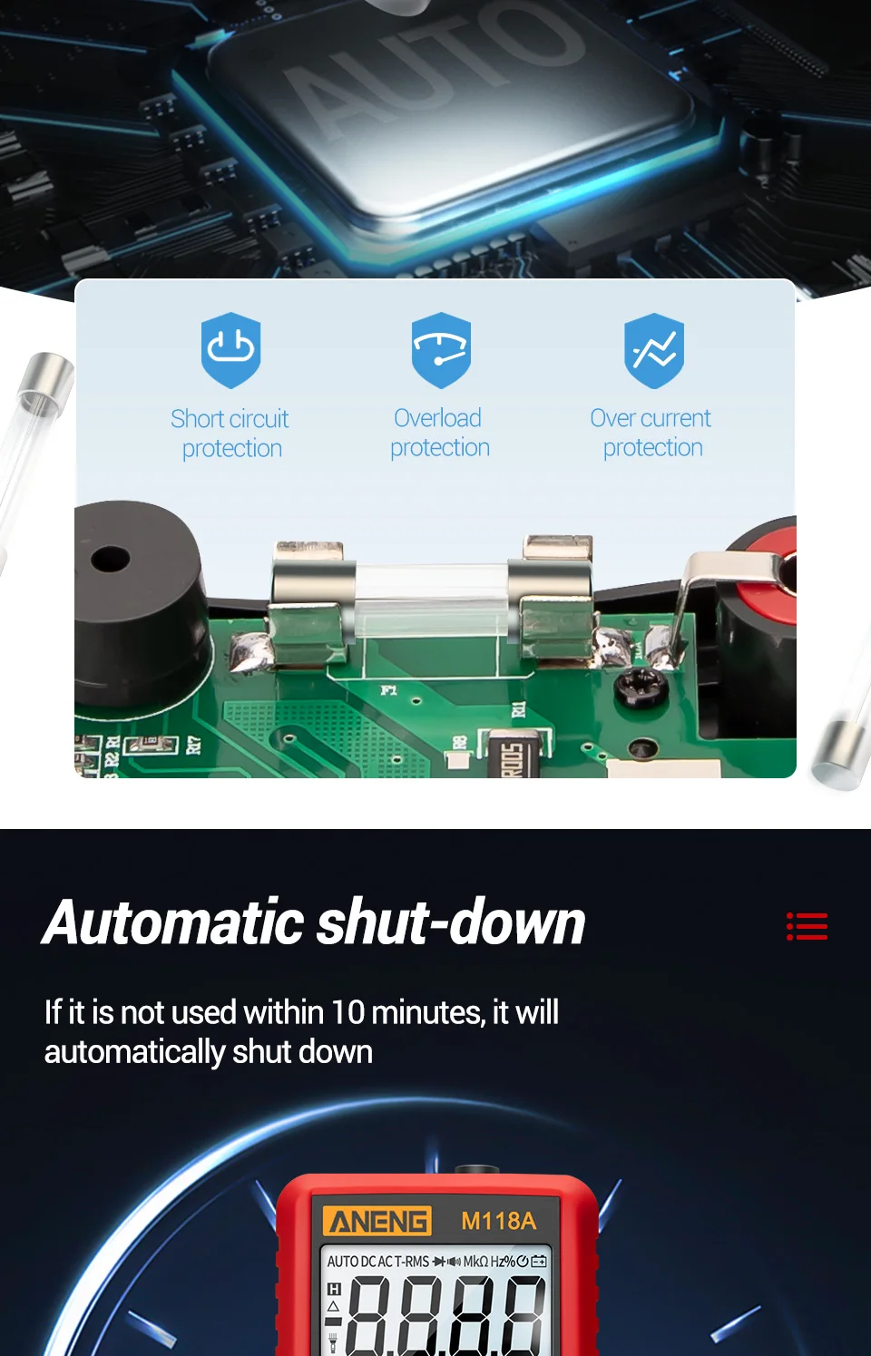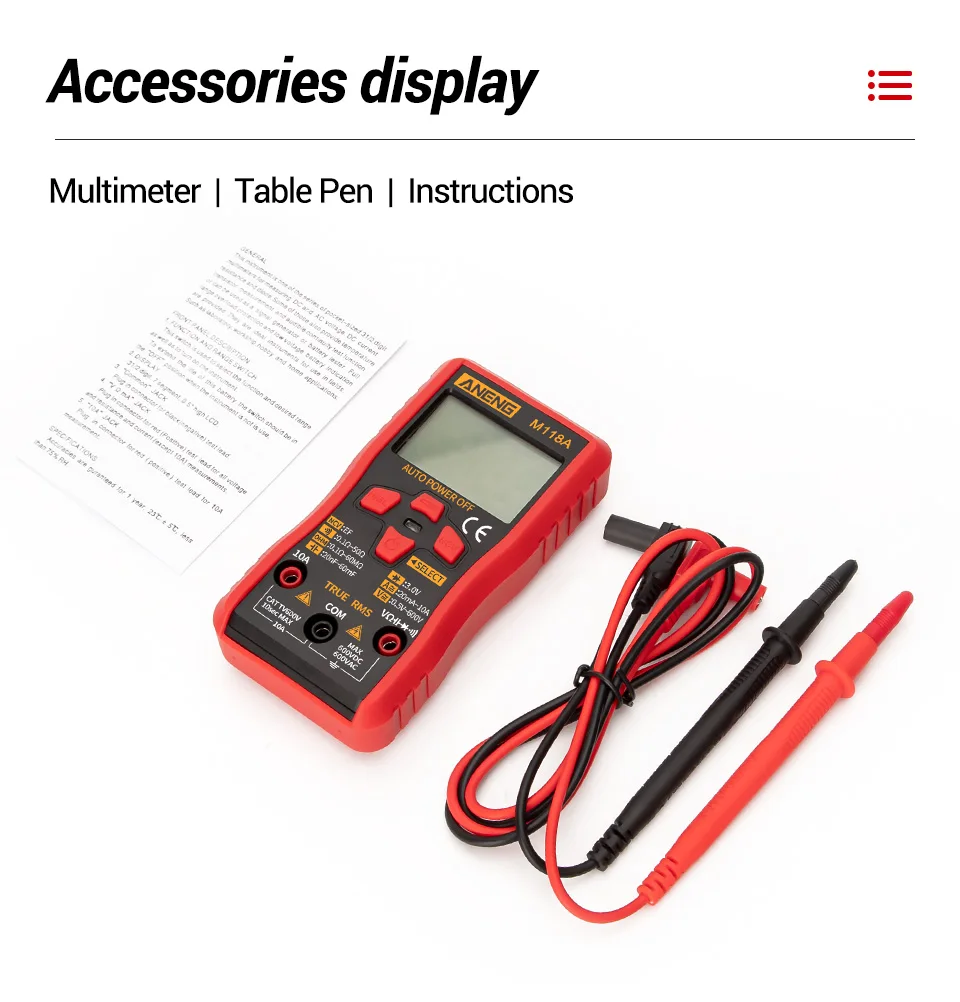 ANENG M118A Цифровой мультиметр истинный среднеквадратичный тестер 6000 отсчетов авто-диапазон AC/DC транзисторный измеритель напряжения