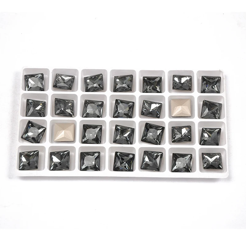 YANRUO 4447, все размеры, черные бриллианты, принцесса, квадратные Кристаллы Стразы с когтями, оправы, задние стразы, ювелирные изделия, ремесла
