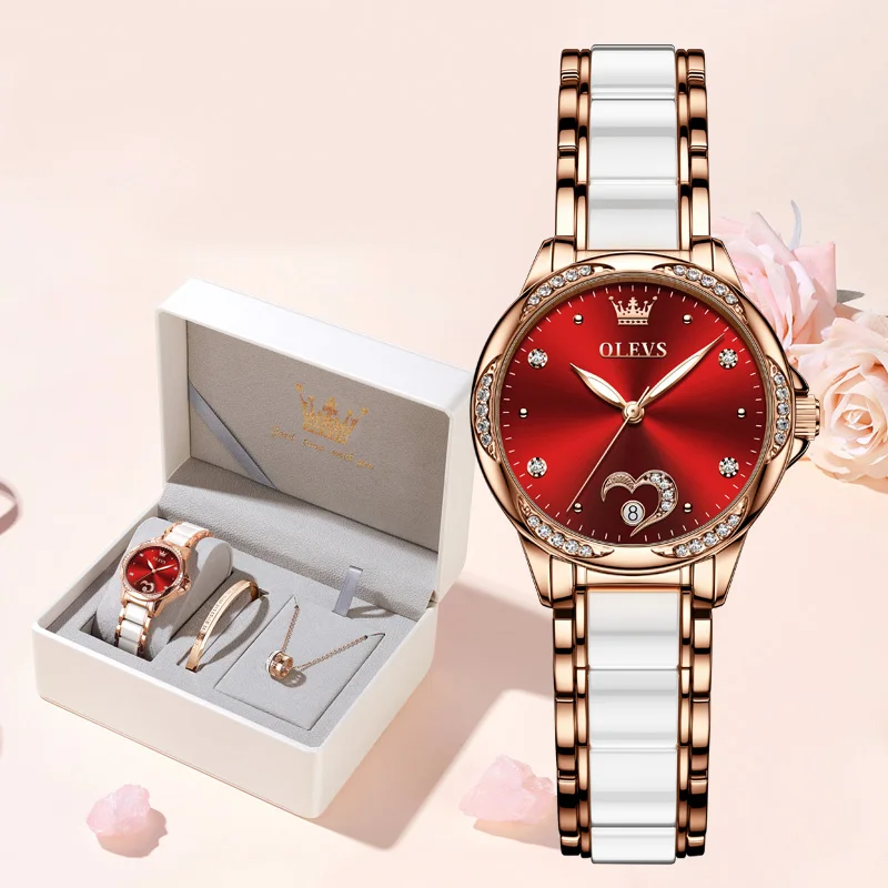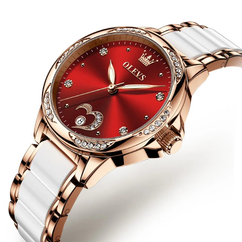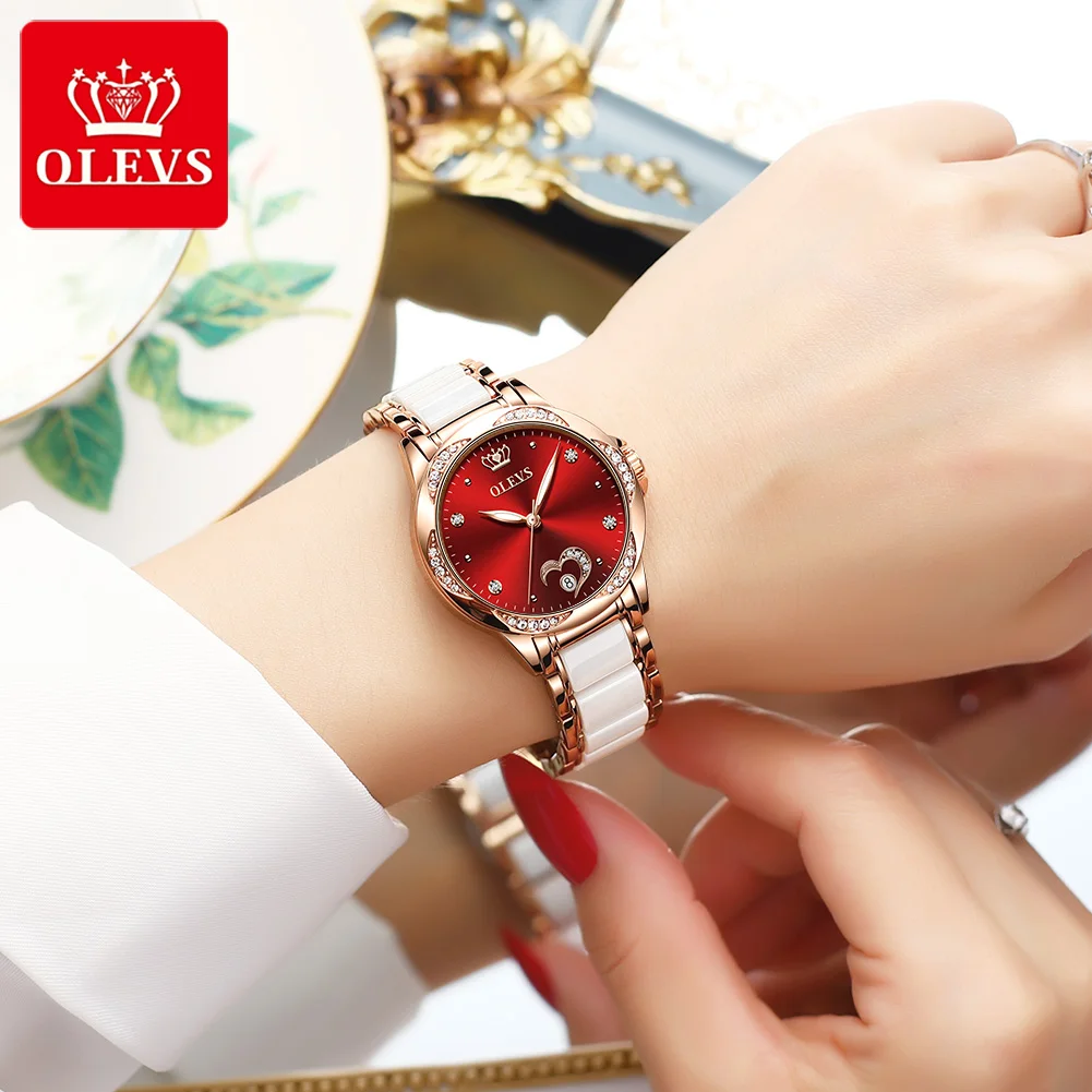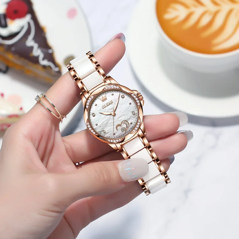 Часы наручные OLEVS женские Автоматические, модные механические элегантные с керамическим ремешком
