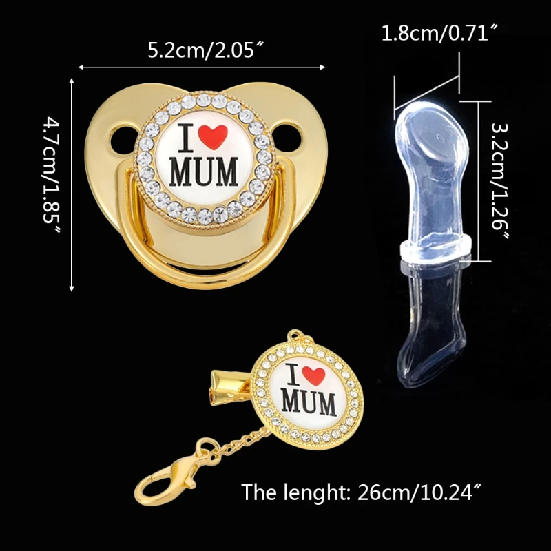 Особенности:Изготовлен из пищевого материала, без запаха, без BPA, безопасен для ребенка.Хрустальные стразы на соске очень сверкающие и великолепные, что привлечет внимание ребенка.Ультра-мягкая силиконовая соска, хороший сосательный вкус для естественного развития полости рта, уважает естественное развитие зубов и десен ребенка.Помогает успокоить спокойное настроение ребенка.Легко моется, нет лапок и трещин для микробов, чтобы спрятаться.Стразы из сплава на цепочке средней длины с зажимом для соски и не обертываются вокруг шеи ребенка, что предотвращает падение соски на землю, клипса на нагруднике или одежде, которая является отличным инструментом для ухода за ребенком.