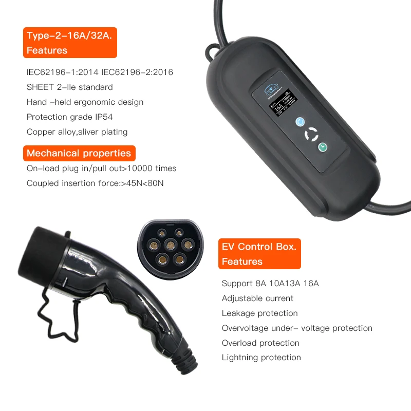 Зарядное устройство для электромобилей типа 2 IEC62196 32A Тип 2 EVSE EV, портативное зарядное устройство для электромобиля с удлинительным кабелем BMW, Hyundai, Tesla