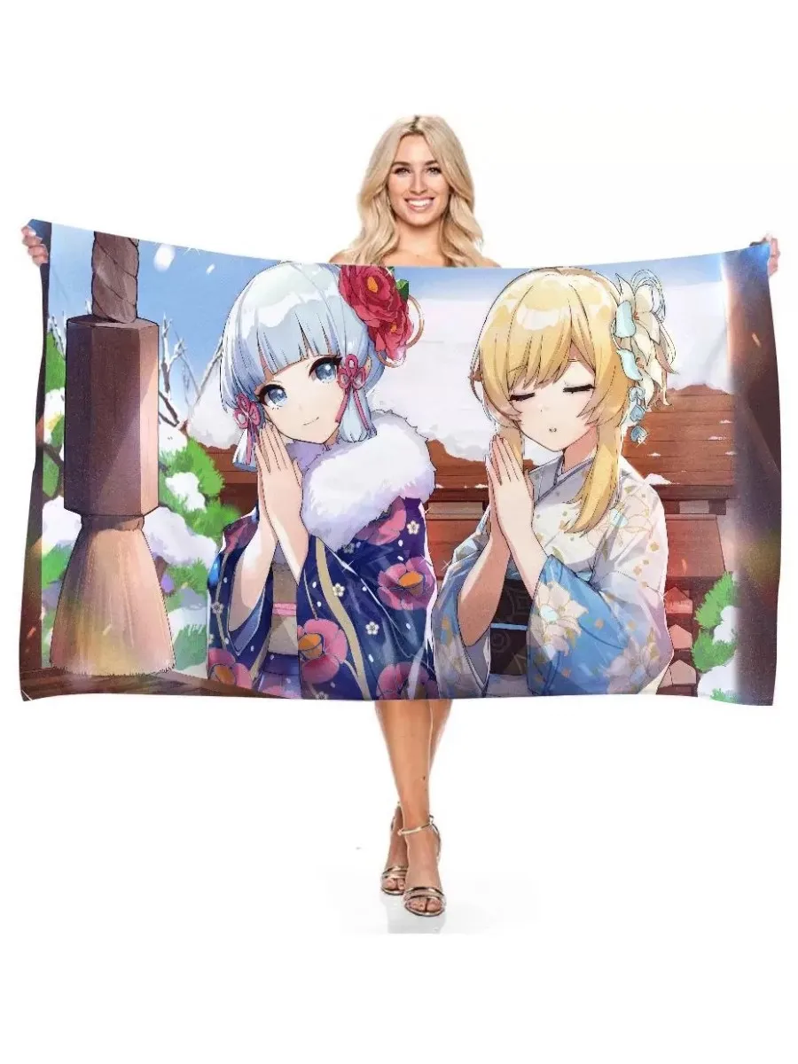 Банное полотенце из микрофибры Genshin с фигуркой ударного воздействия, красивое джинсовое полотенце Klee Kaeya, банные халаты для ванной, пляжа, спа, одежда для стирки в стиле аниме