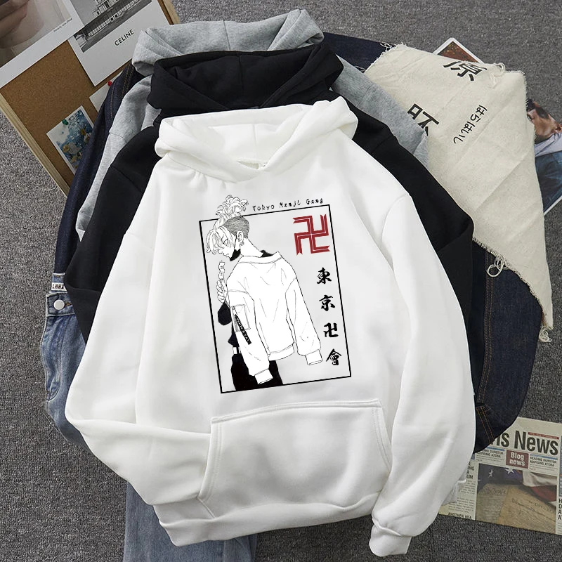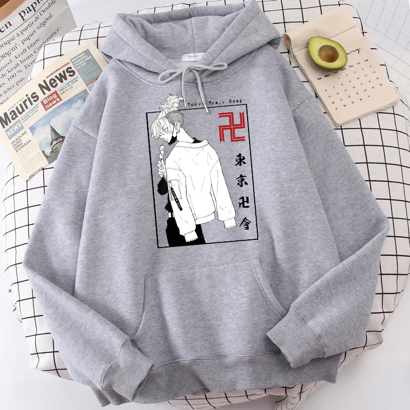 Толстовка Harajuku с принтом аниме Токио Мстители, повседневная, с длинным рукавом, с капюшоном