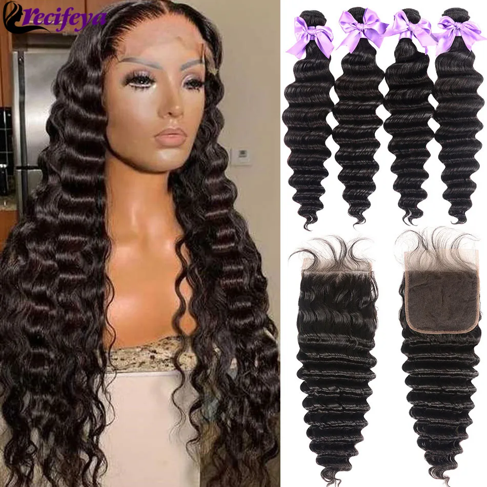 Прозрачная Кружевная передняя часть с пучками, бразильские свободные глубокие волнистые пучки с фронтальной 100% Реми, человеческие пучки волос с застежкой