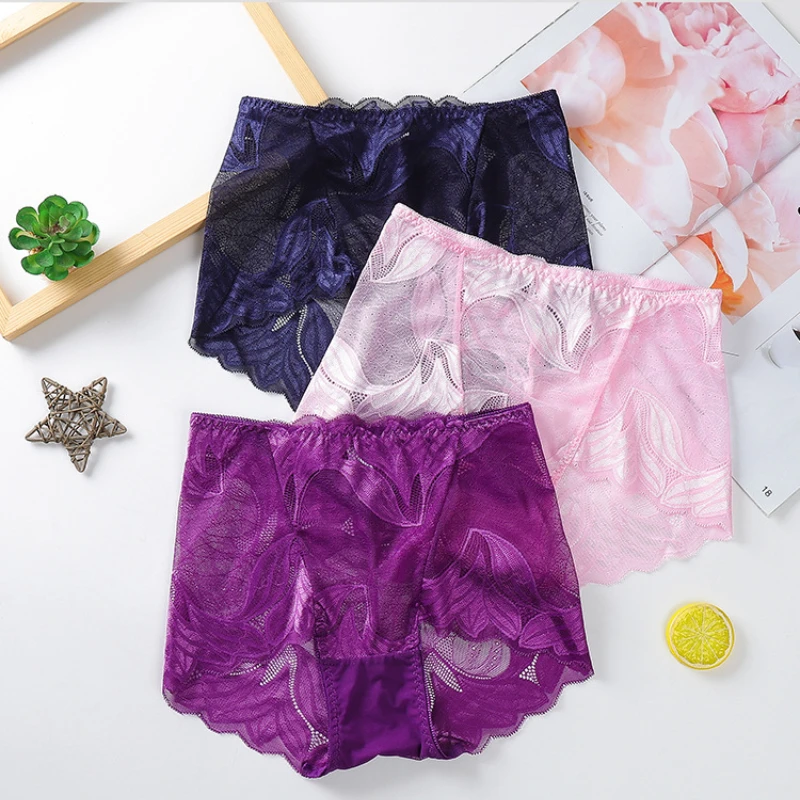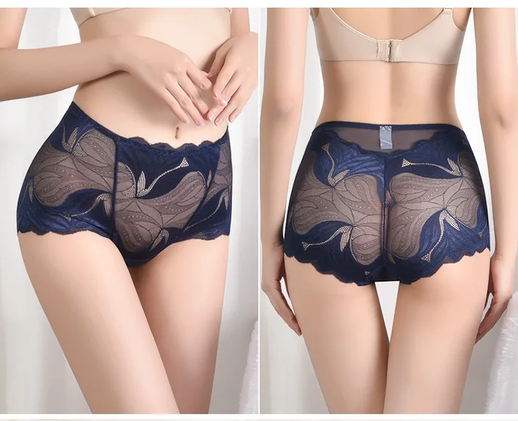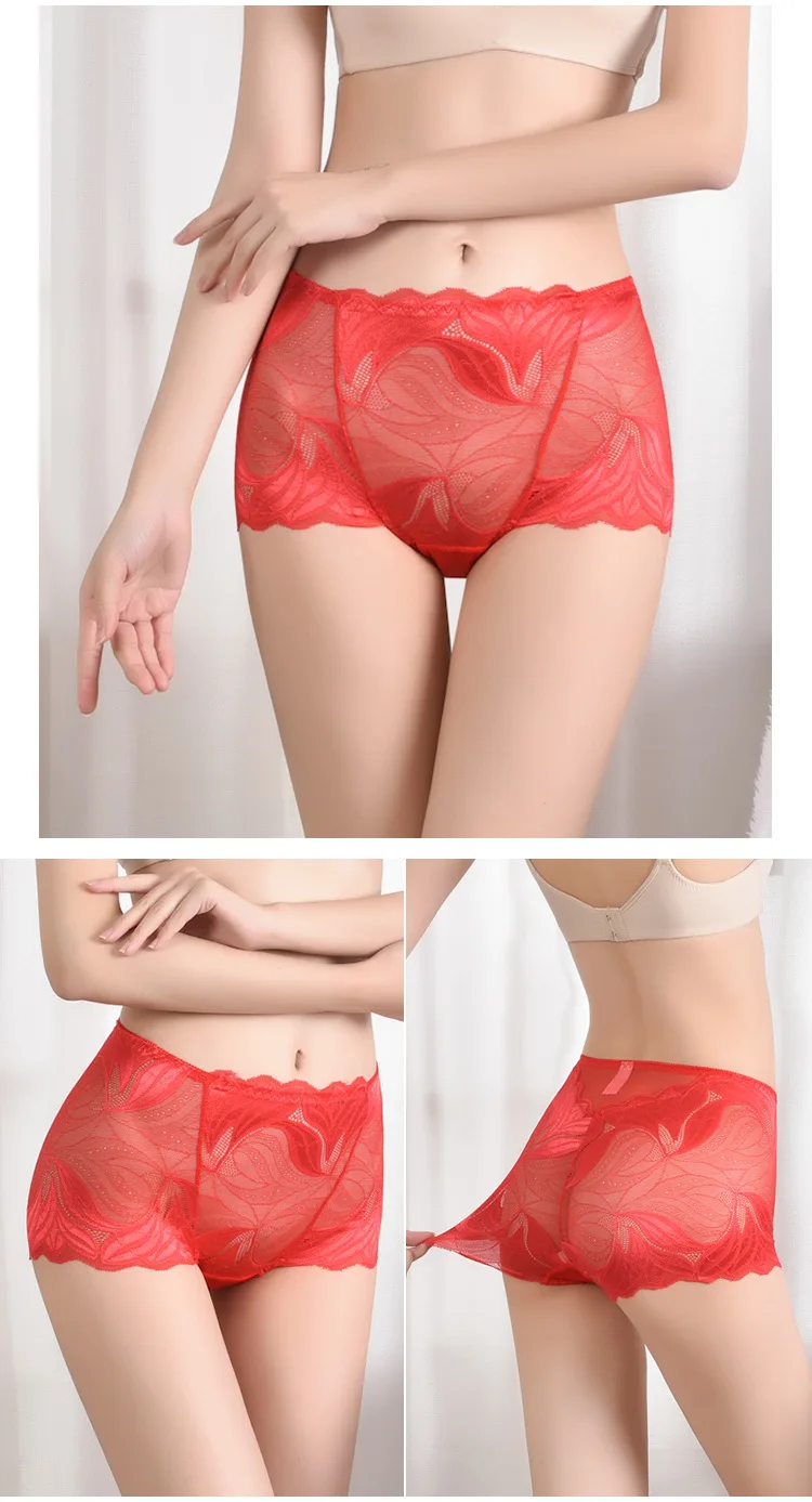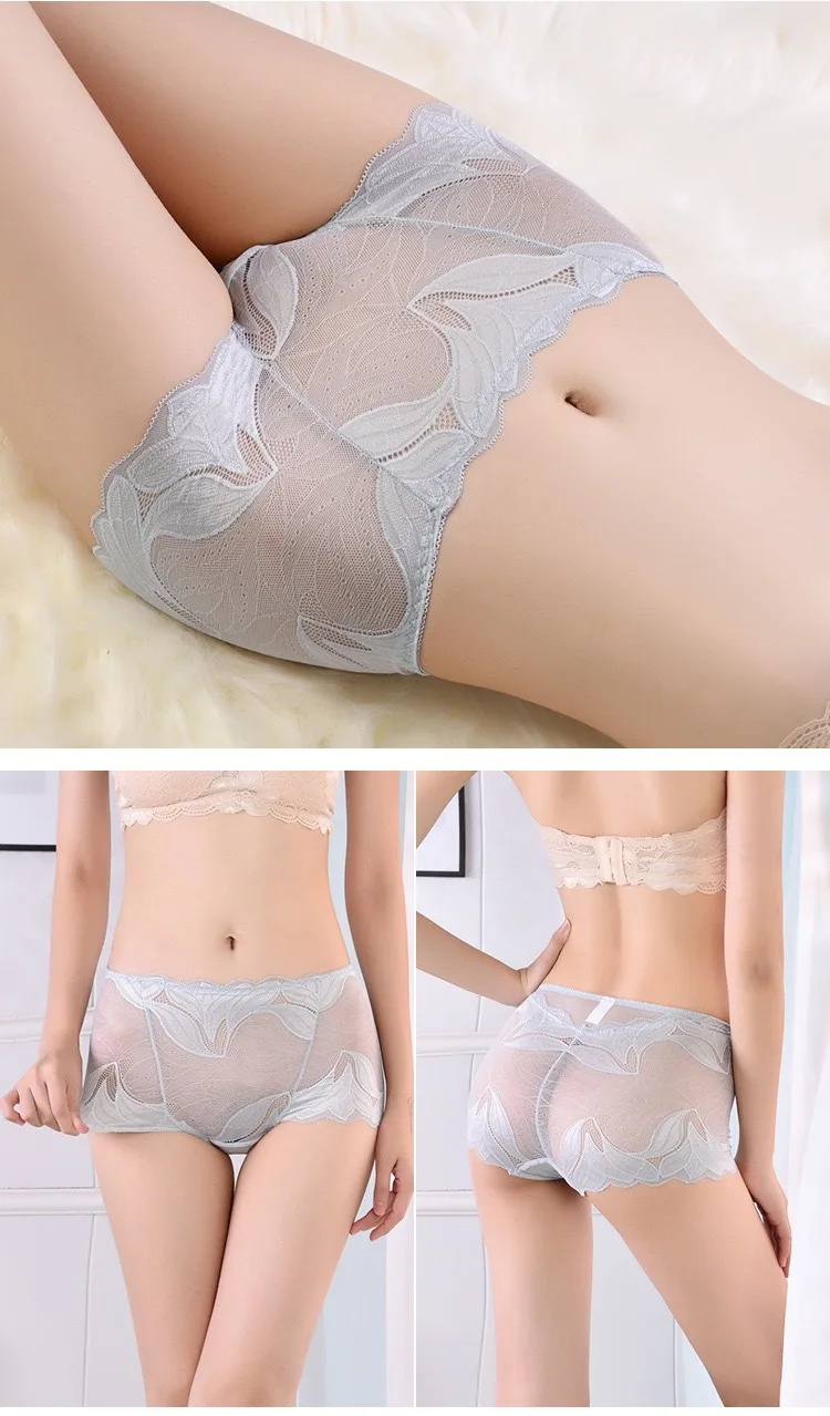Трусики женские кружевные, бесшовные, со средней посадкой, летние, прозрачные, шелковые, трусы больших размеров