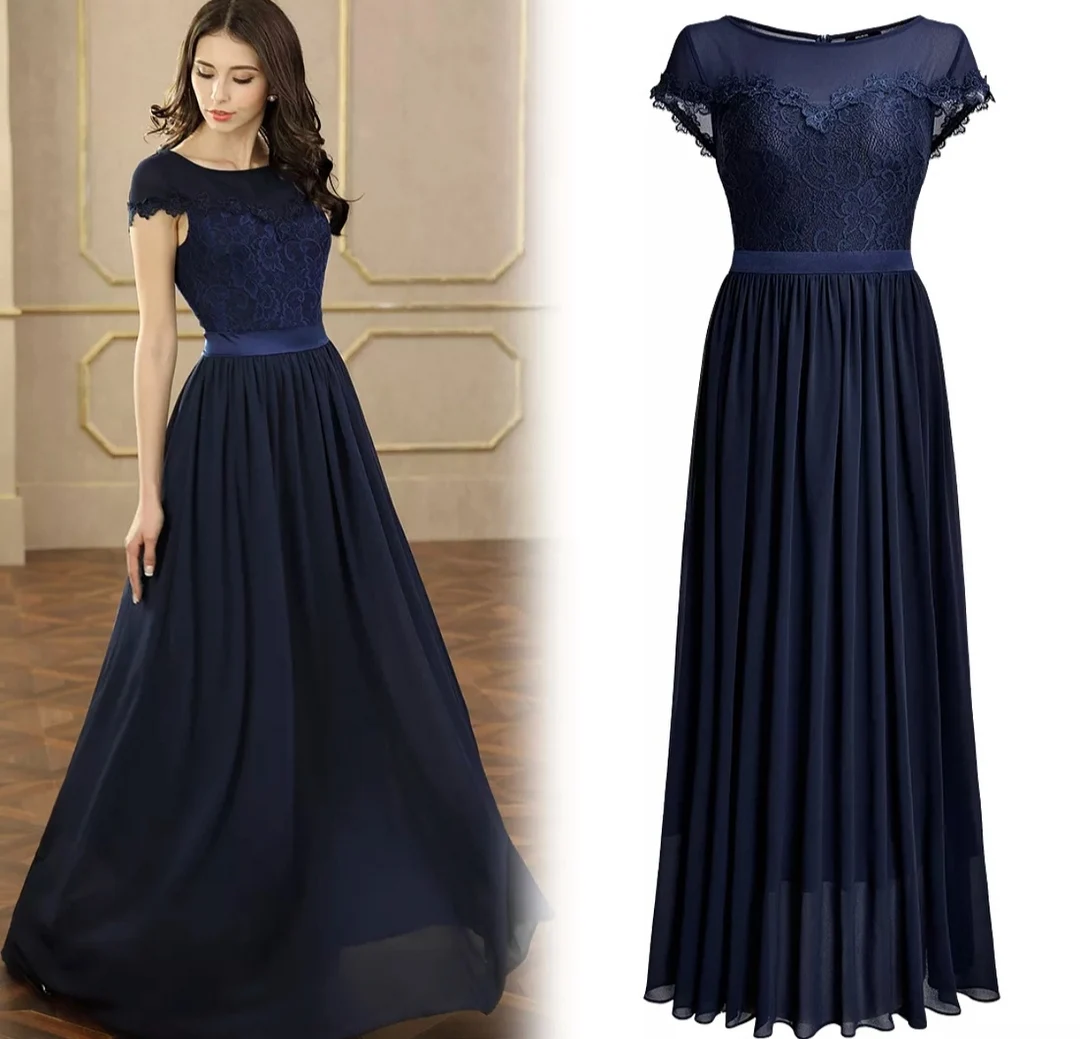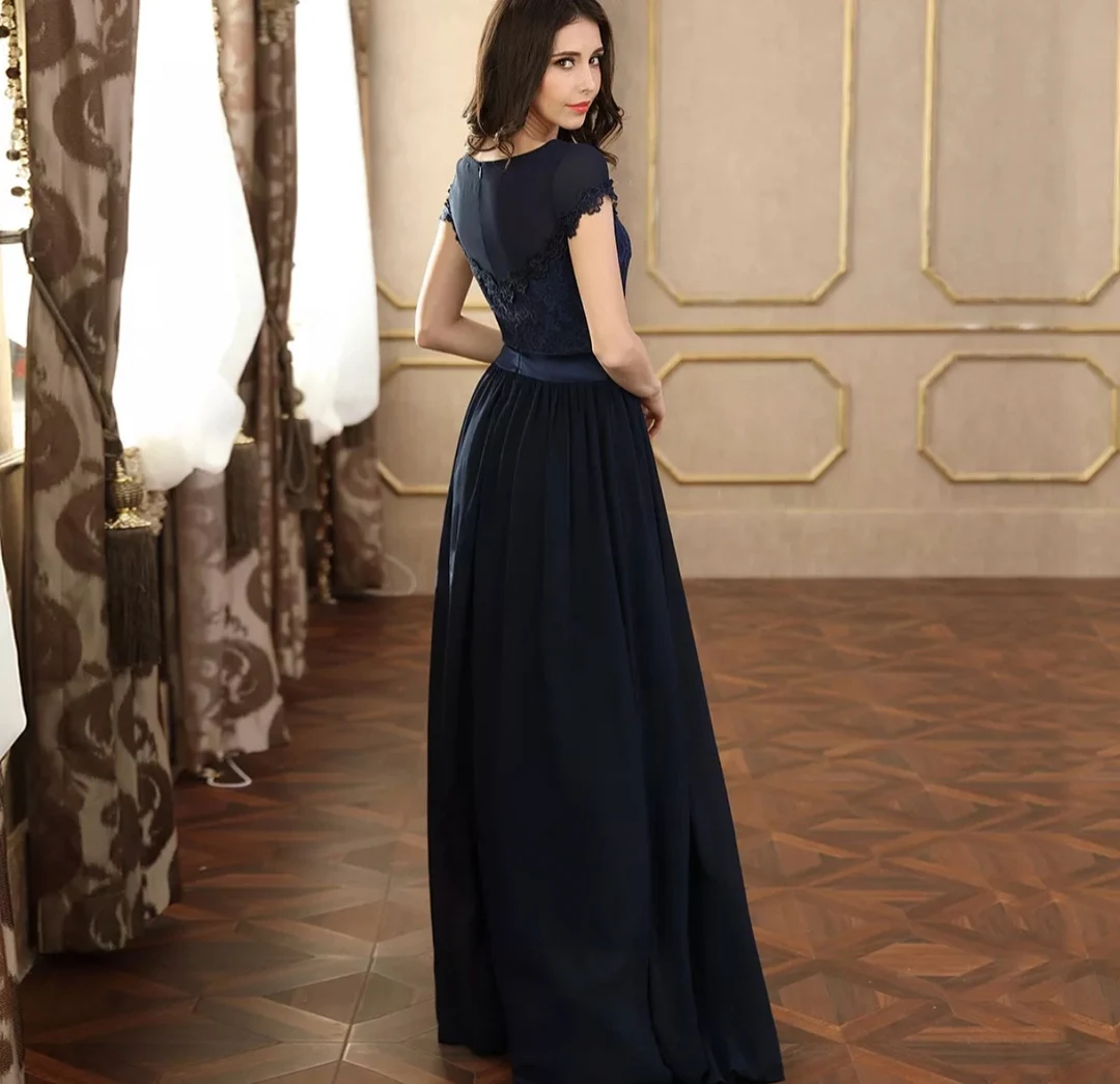 Женское кружевное платье в пол, элегантное темно-синее платье для матери невесты с длинными рукавами-крылышками и молнией на спине, 2019