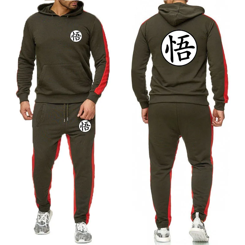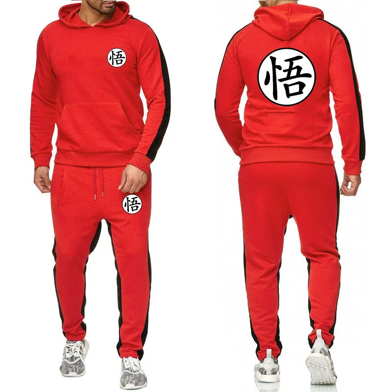 Мужской комплект из двух предметов Goku, Черный свитшот с капюшоном и спортивные штаны, большие размеры, Осень-зима 2021