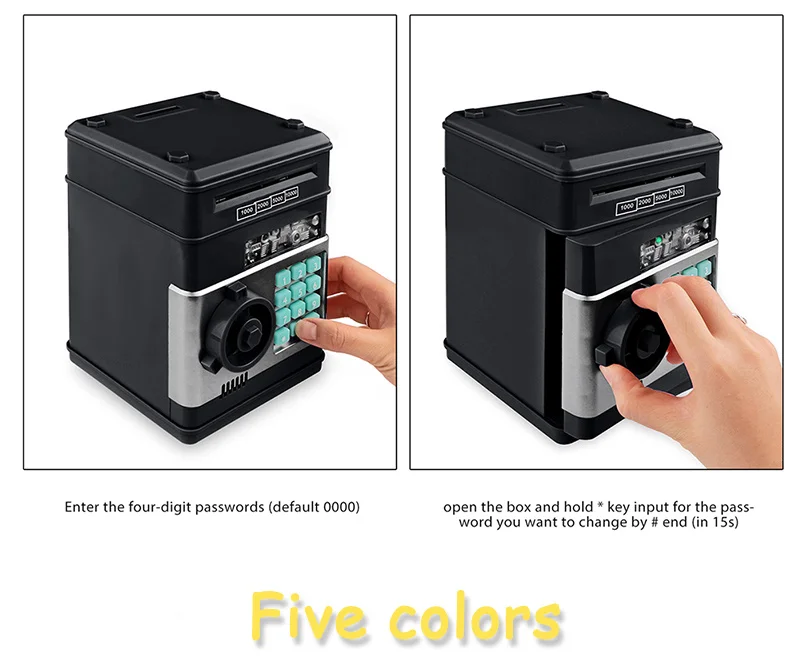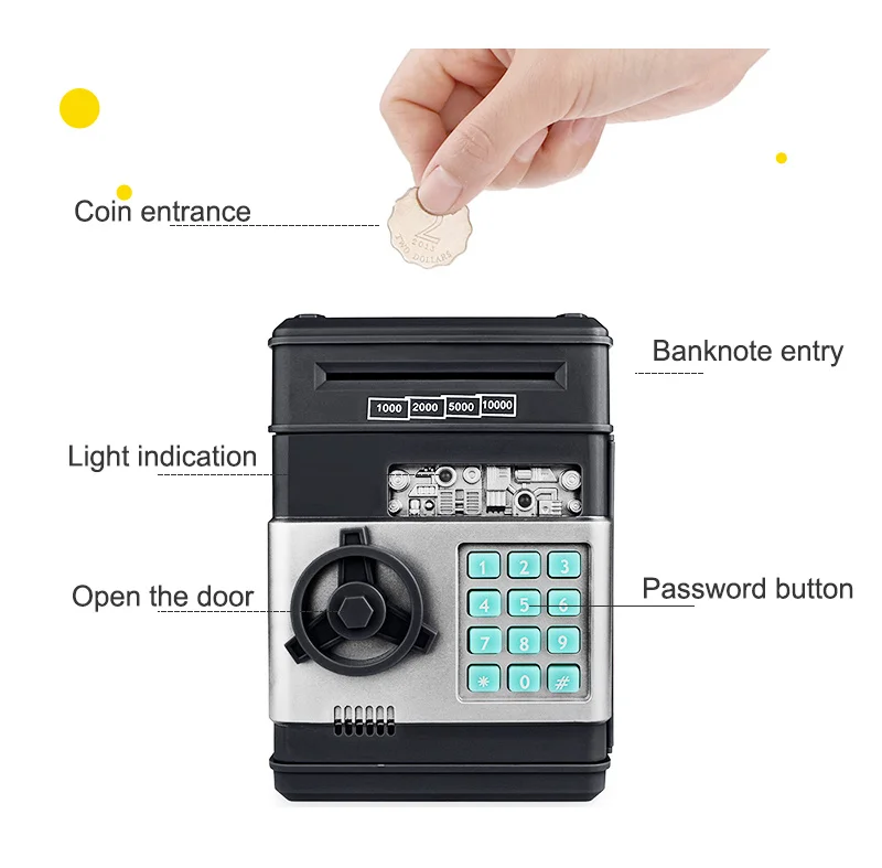 Особенности: Высокое качество Безопасная конструкция для моделирования, хотя материал является экологически чистым материалом ABS, но не вводил пароль, чтобы открыть, это непростая вещь. Автоматический слот для денег Положите банкноту в депозитный порт и аккуратно нажмите на контактный выключатель, он будет автоматически подключен к сейфу (Примечание: банкнота, которая слишком старая и слишком мягкая, может не запускать контактный выключатель) Поверните переключатель разблокировки Без правильного ввода пароля этот переключатель не может быть включен. После ввода правильного пароля зеленый светильник включится, чтобы открыть сейф. Клавиатура с паролем Четыре электронных защиты паролей, вы можете изменить свой пароль, более безопасный и надежный. 4-значный пароль может быть набор по своему желанию, и завод по умолчанию, что пароль для операций-это не 0000. Если вы забыли пароль, вы можете вынуть аккумулятор и дать ему сидеть некоторое время, чтобы восстановить заводские настройки. Большое пространство Очень большое пространство, не только может хранить деньги, но также может внести некоторые незаконные закрытые гаджеты среди них. Слот для монет, голоса и вещи для хранения С паролем, голосом, в дополнение к экономии денег, а также для определения целей экономии, планирования финансовых расходов. Можно использовать для хранения игрушек, ювелирных изделий, банкнот и т. д. слот в слоте для монет может содержать монеты или бумажные деньги. Использование операционной системы Чтобы открыть сейф, сначала введите четырехзначный пароль. По умолчанию: 0000 Выполните следующие действия для использования сейфа: Введите четырехзначный пароль, и зеленый светильник включится. Если вы вводите неправильный пароль, красный светильник будет светильник, и вы услышите «please try again». Поверните ручку по часовой стрелке, чтобы открыть дверь. Если зеленый светильник включен около 10 секунд, вы услышите крик, когда дверь открывается. Если дверь была открыта более 10 секунд, зеленый светильник выключается и загорается каждые 20 секунд. Чтобы остановить звуковой сигнал, закройте дверь. Положите бумажные деньги в пасть бумажных денег. Бумажные деньги можно вводить напрямую. Затем вы можете снять деньги напрямую, нажав на код. Когда вы закончите, закройте дверь и закройте ее. Чтобы изменить пароль, выполните следующие действия: Введите текущий пароль (оригинальный пароль 0000), чтобы открыть безопасную дверь. Длинные подключения "*" ключ, индикатор светильник не начнет мигать. Введите Новинка 4-разрядный пароль не позднее 15 секунд, нажмите кнопку "#" для подтверждения хранения Новинка пароль, а светильник перестанет мигать. Примечание: Если новый пароль не введен в течение 15 секунд, программа остановится и должна быть перезапущена. Отпустите кнопку «*» и закройте дверь. Bleep или voice: введите свой текущий пароль и откройте дверь Нажмите переключатель (задняя часть двери) влево или вправо, чтобы установить звуковой сигнал или звук разговора и закрыть безопасную дверцу шкафа Характеристики: Тип: автоматическая коробка для денег с паролем ATM Количество: 1 шт. Материал: АБС + электронные компоненты Цвет: серебристый/золотой/синий/розовый/черный Аккумулятор: 3 * AA батареи (не входят в комплект) Размер: 13*12,5*19,5 см/5,1*4,9*7,7 ”(Д * Ш * В) Посылка: 1 * ATM коробка с паролем автоматическа