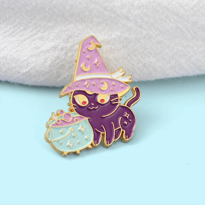 Серия на Хэллоуин Фиолетовый волшебный кот ведьмы сплав эмалированн...