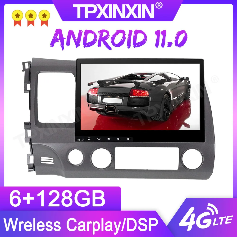 Автомобильный мультимедийный плеер, Android 11,0, 6 + 128G, для Honda CIVIC 2006-2011, GPS, головное устройство, аудио, радио, навигация, магнитофон
