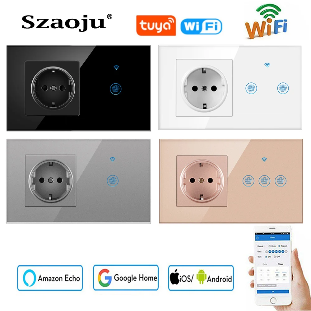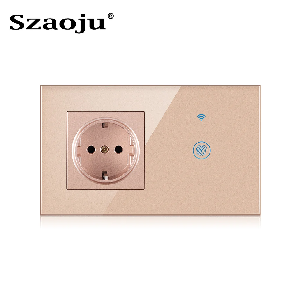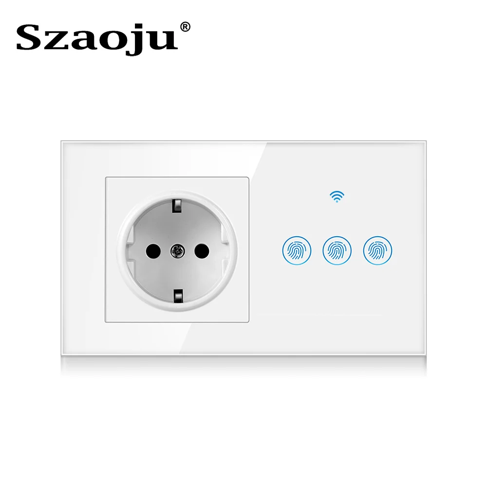 Умный сенсорный выключатель TUYA, 433 МГц, с гнездом из хрустального стекла, 110 250 В переменного тока, 16 А, 146*86 мм, настенная розетка с выключателем света, 1 комплект, 1 канал