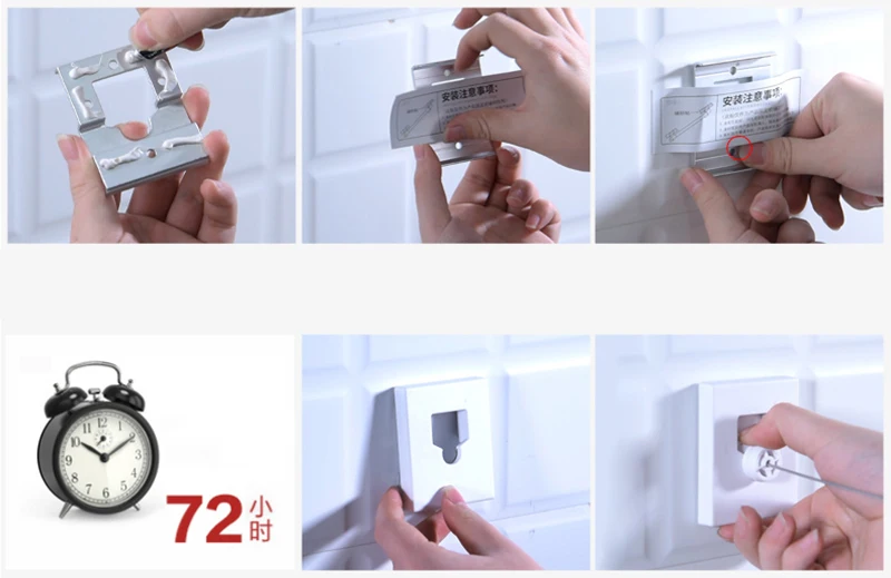 1. Нанесите клей на заднюю часть основания2. Дополнительные наклейки3. Наклейте на стену, плотно сожмите, чтобы разложить клей4. Подождите 72 часа после того, как вы находитесь на стене5. Установите основной корпус6. Установка завершена