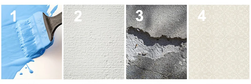 1. Краска стены2. Гипсовая стена3. Цементная стена4. Обои на стену