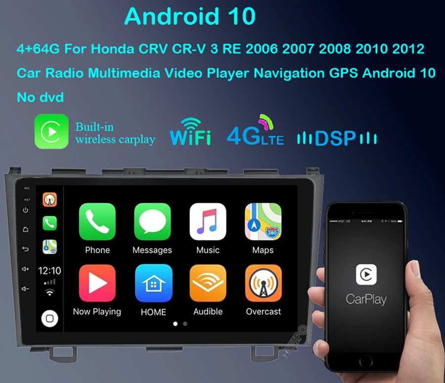 4 + 64 ГБ для Honda CRV CR-V 3 RE 2006 2007 2008 2010, автомобильное радио, мультимедийный видеоплеер, навигатор GPS, Android 10, 2din