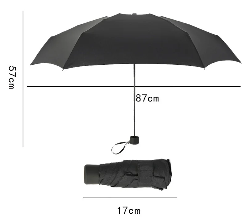 Мини Черный Один Карманный Зонт 180 г Маленький модный складной зонт