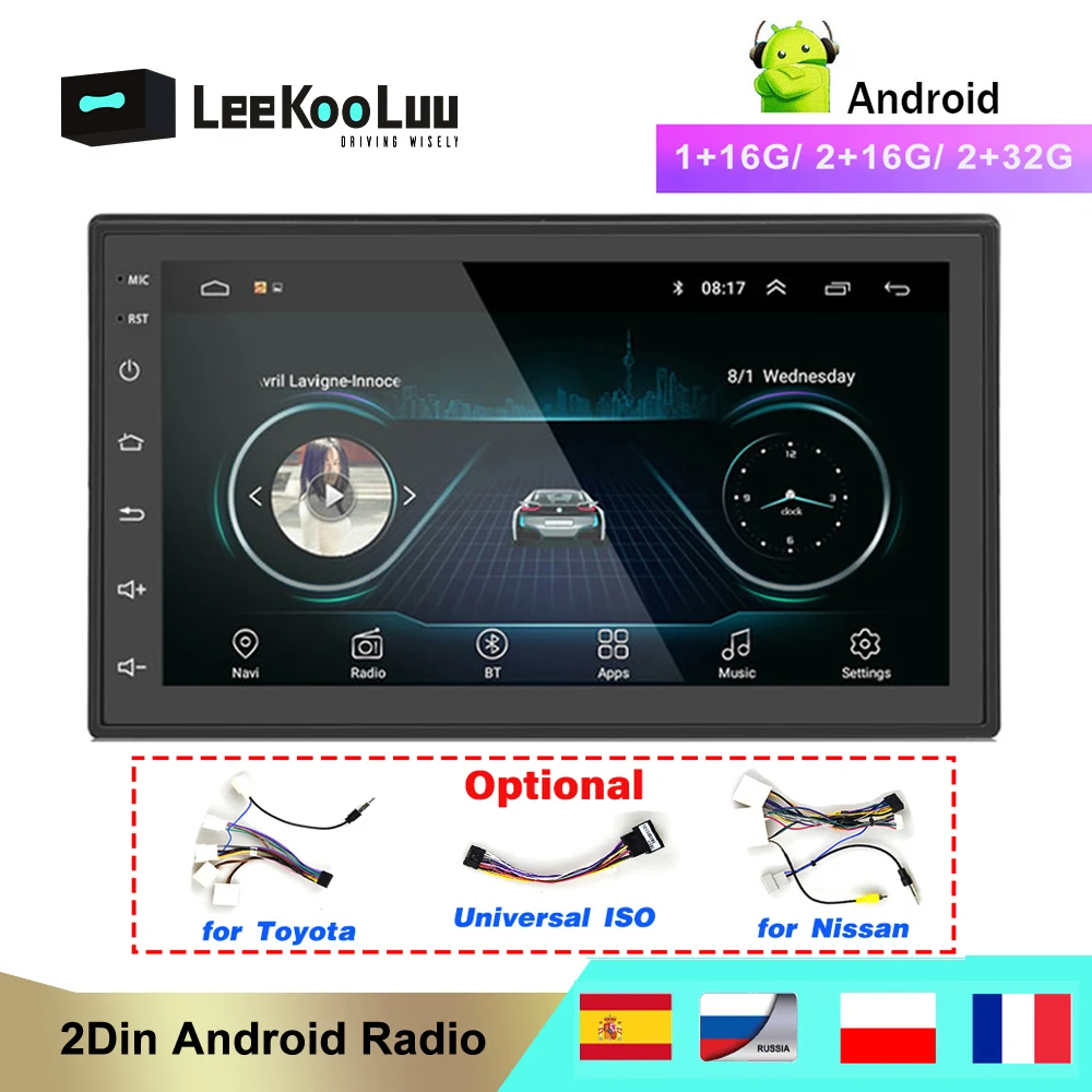 Автомагнитола LeeKooLuu, 2 din, Android, мультимедийный плеер, 7 дю...