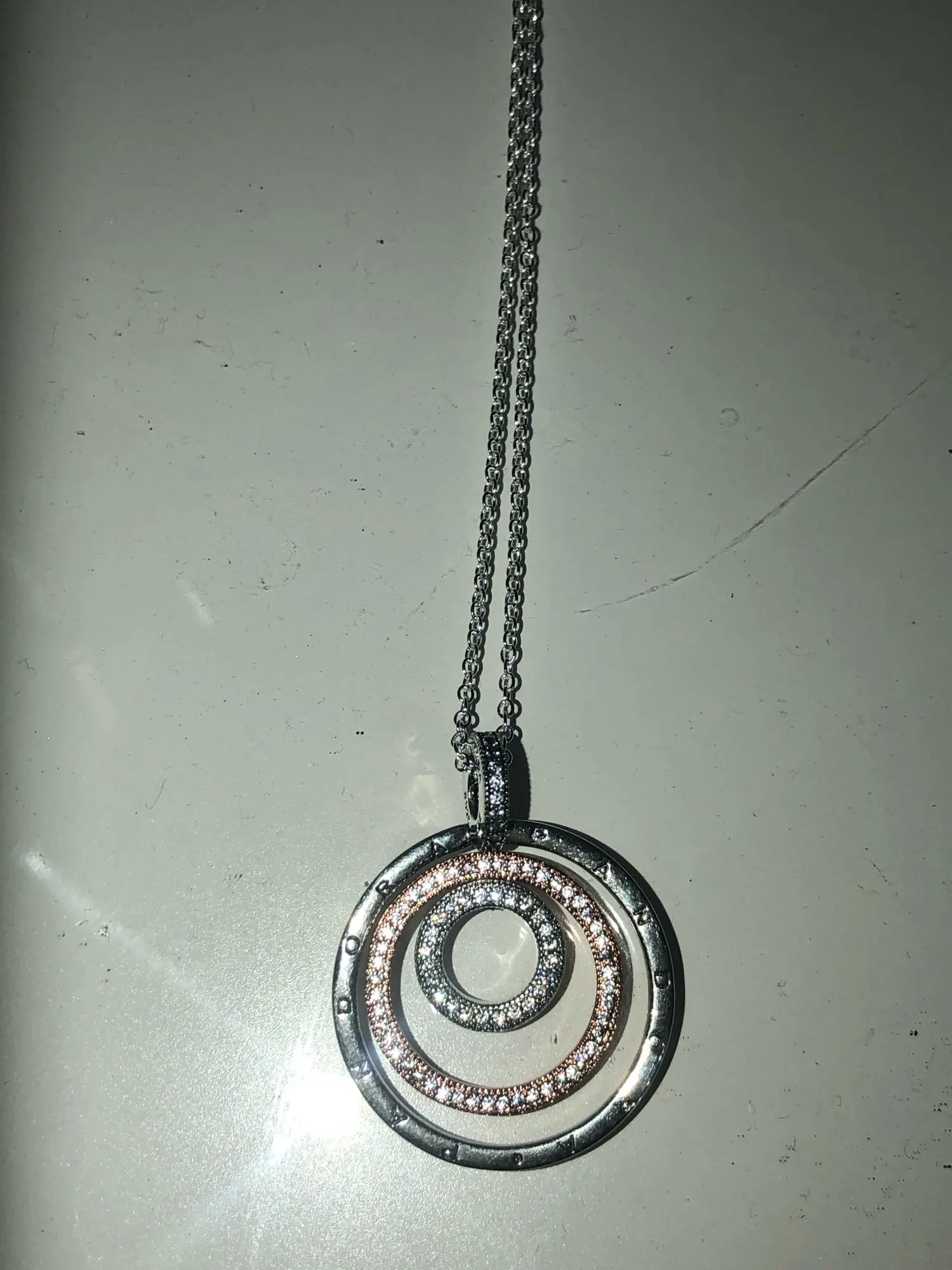 Товар отличный! Имеет пробу серебра! Как на цепочке, так и на кулоне имеется надпись Pandora , что делает данный товар соответствующим оригиналу! Единственное - цепочка и кулан разных расцветок: кулон темнее за счёт вставок в виде камней, а цепь светлее, но это не замечание, а скорее предупреждение тем, кто любит все тон -в- тон!) Продавца и товар рекомендую! В дальнейшем, убедившись в товаре, дополню отзыв! Кстати, цепочка имеет несколько вариантов длины.