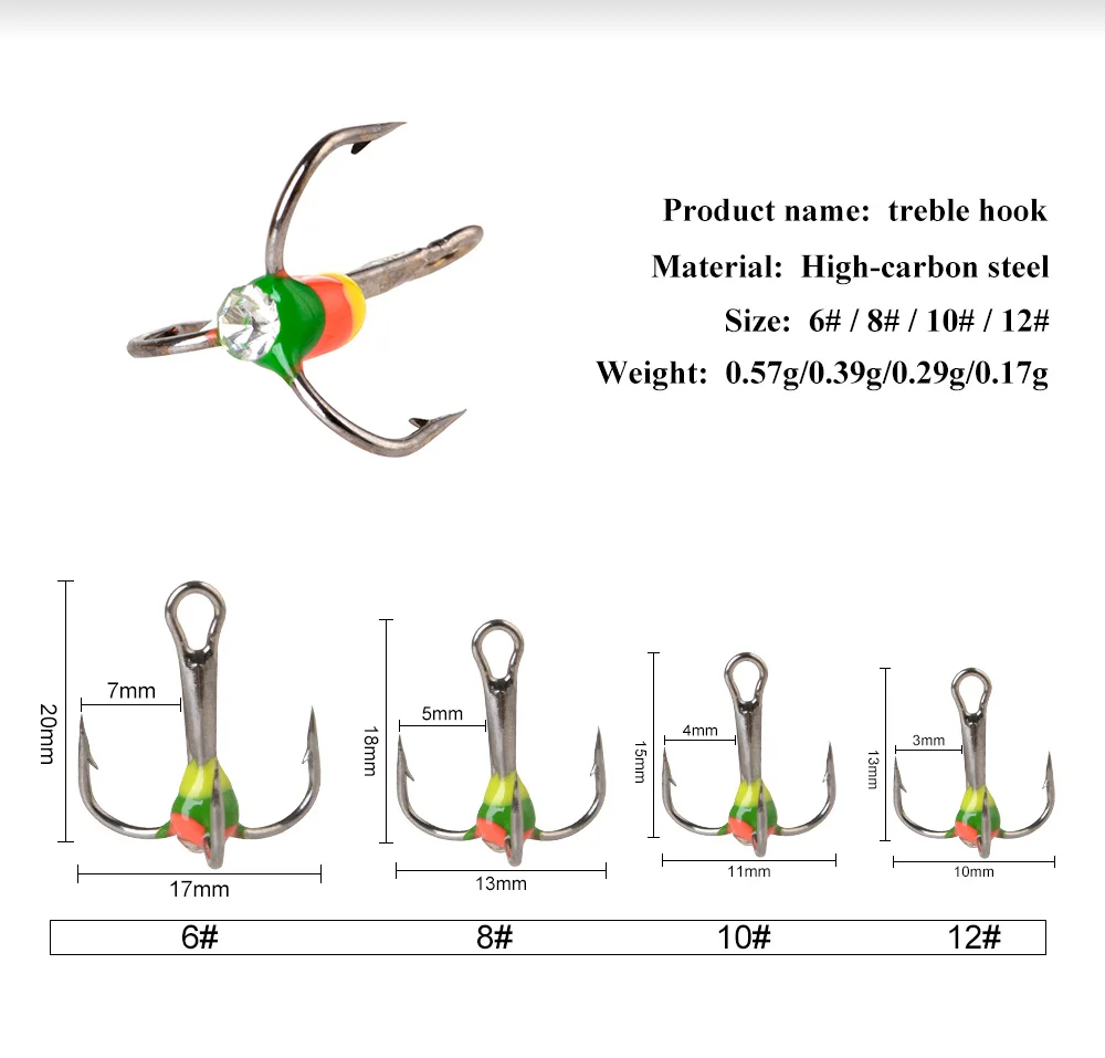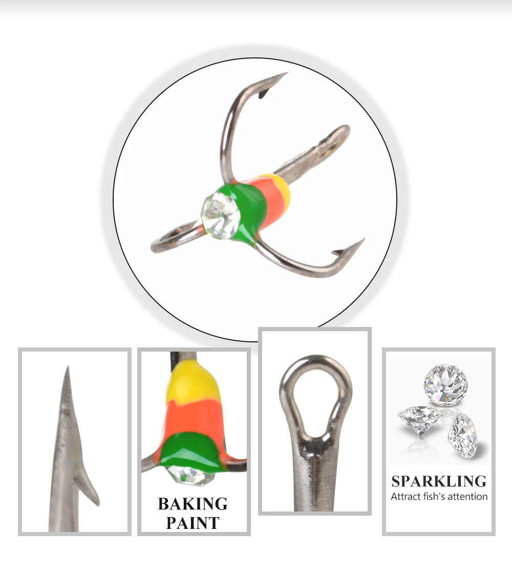 Тройные Крючки для зимней подледной рыбалки с 3D глазом, 681012 #