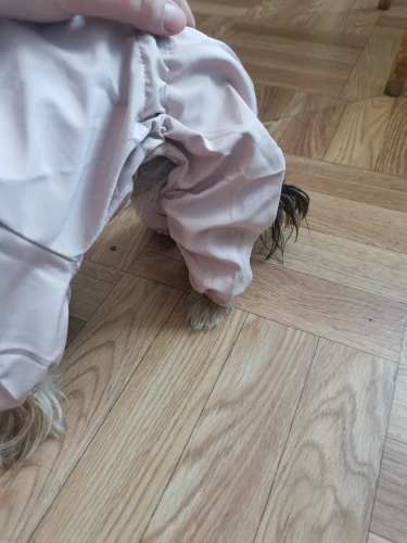 Не подходит для Папийонов! и видимо, у кого тоненькие лапы. Резинка слабая и лапы все время попадают внутрь, когда собака бежит(((