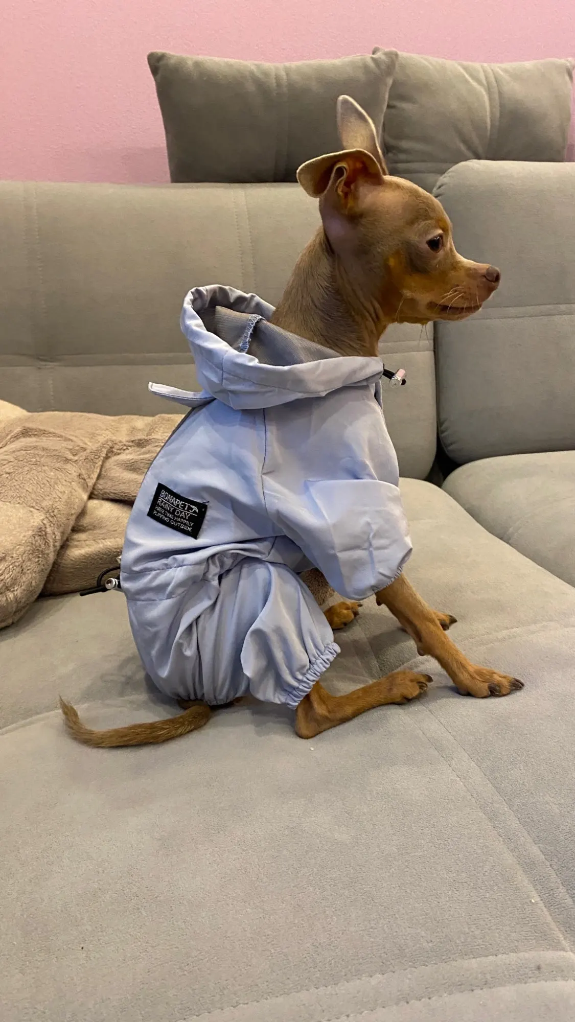 Отличный комбинезон, ткань и пошив качественные, на длинношерстного чихуахуа 4,6 кг подошел хорошо, только на моего откормленного пса резинка у хвоста туговата, буду подрезать