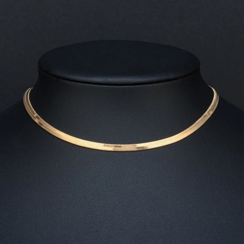Женское Ожерелье-чокер со змеиным плетением, плоский чокер в елочку, золотистого и серебристого цвета с пряжкой-лобстером