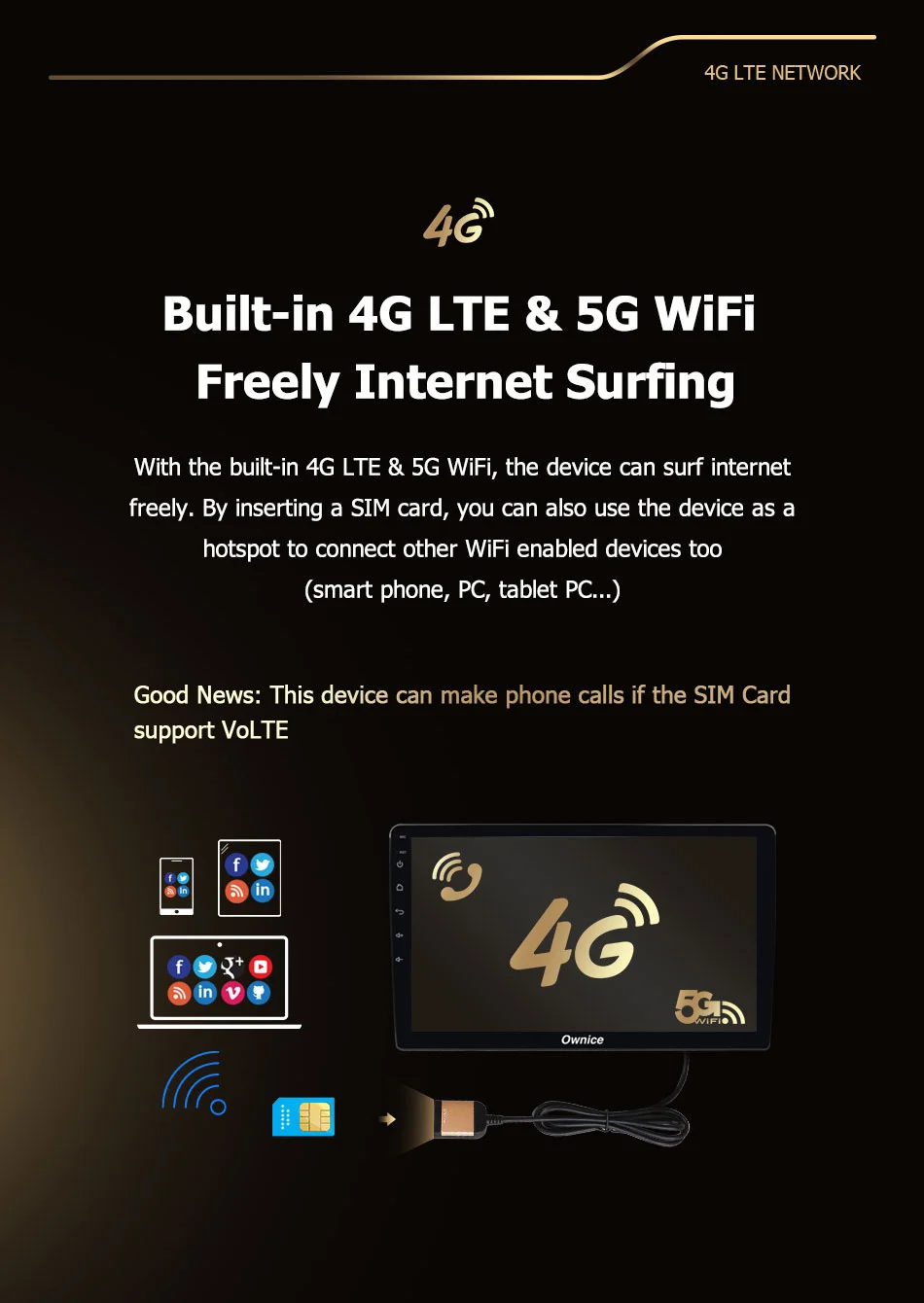 Wireless internetSupport 4G LTE , Built-in WIFI