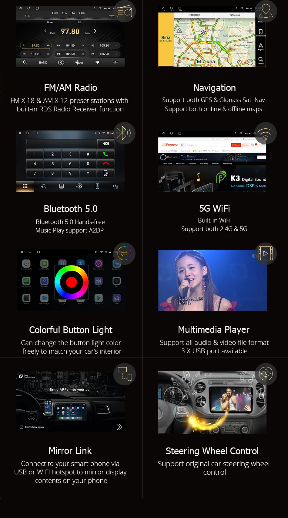 Android 10 6G + 128G Carplay K7 автомобильный Авторадио Мультимедиа...