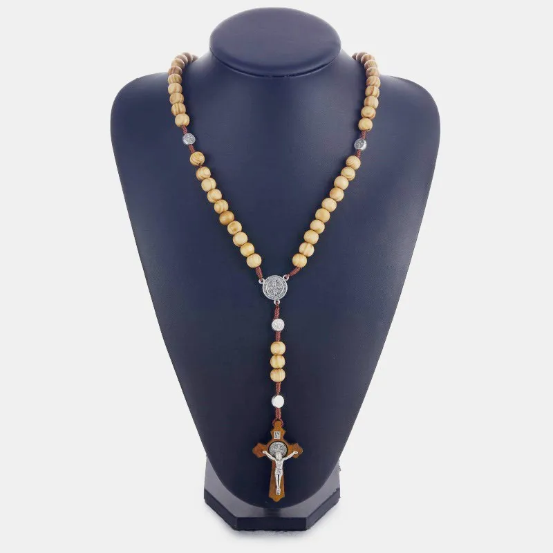 Ожерелье из черного дерева с подвеской-крестом в виде Розария