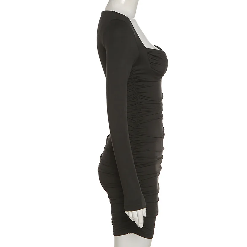 Платье-мини зимнее Облегающее с V-образным вырезом и длинным рукавом
