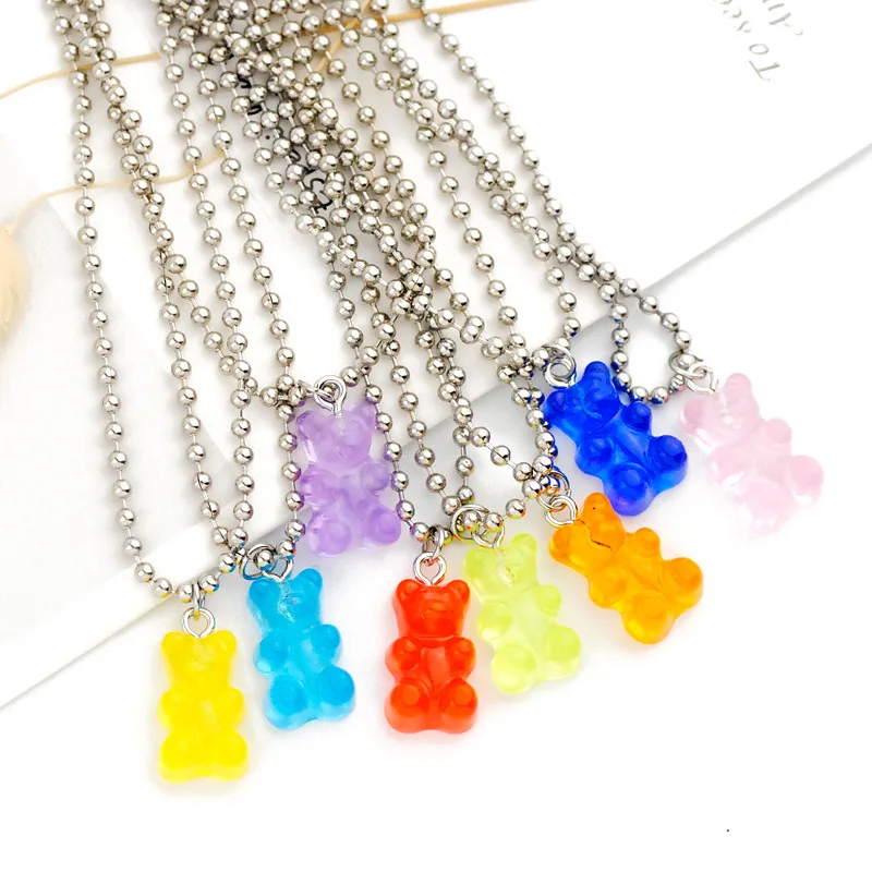 Ожерелье из нержавеющей стали, кулон, кулон, Di Tu, крутая девочка, цепочка из бисера, гипоаллергенное, забавное, милое, яркое, мишка, ювелирное изделие