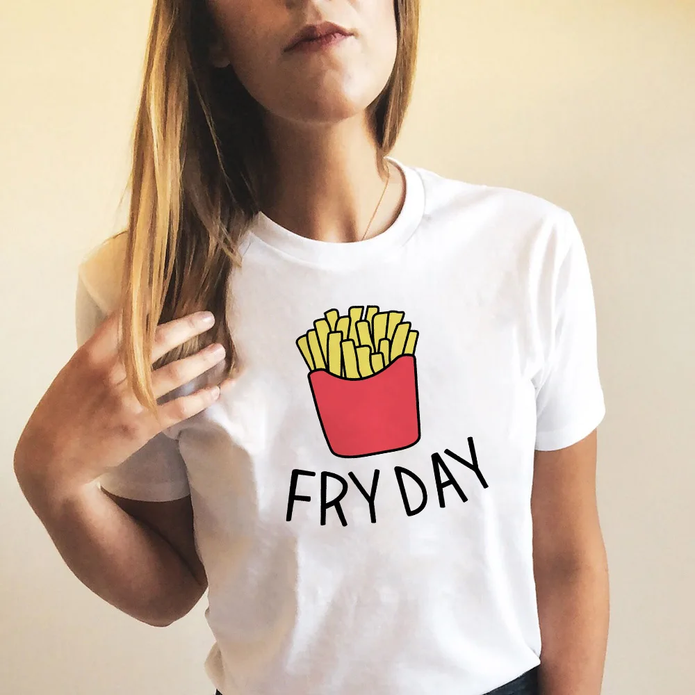 Женская футболка на день жарки картофеля фри, летняя модная футболка с графическим рисунком в стиле Харадзюку, кавай