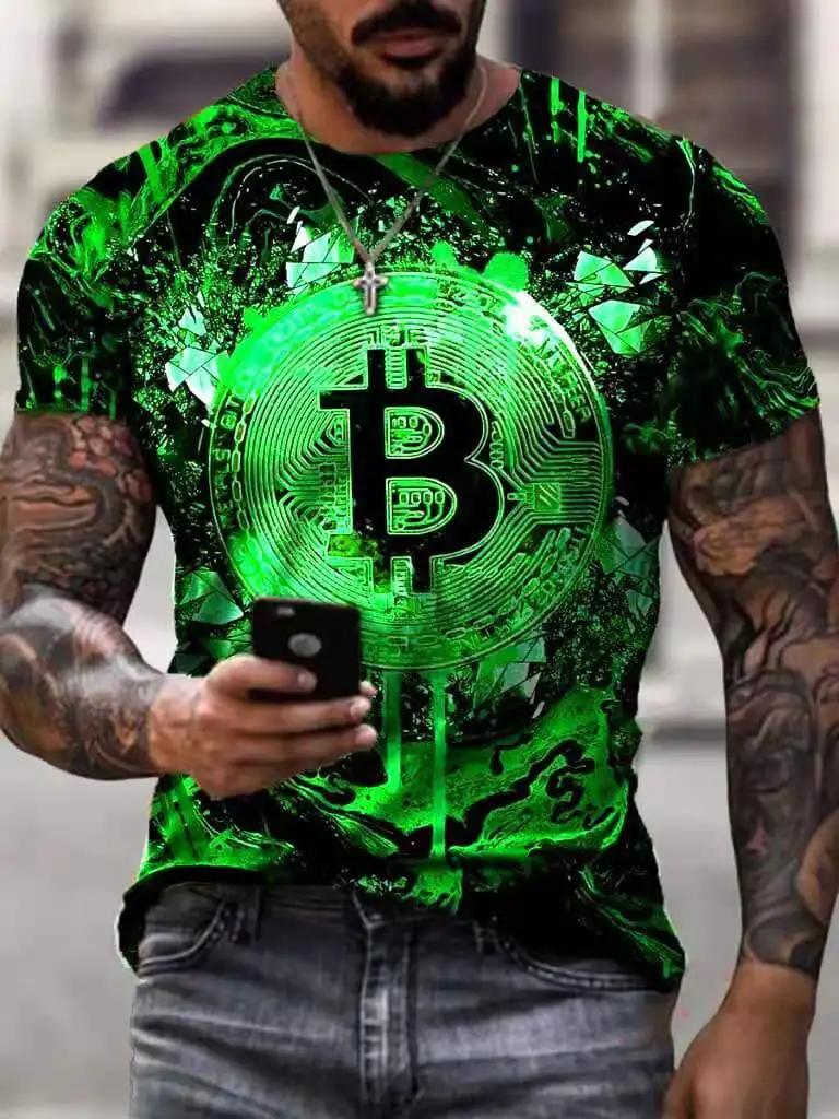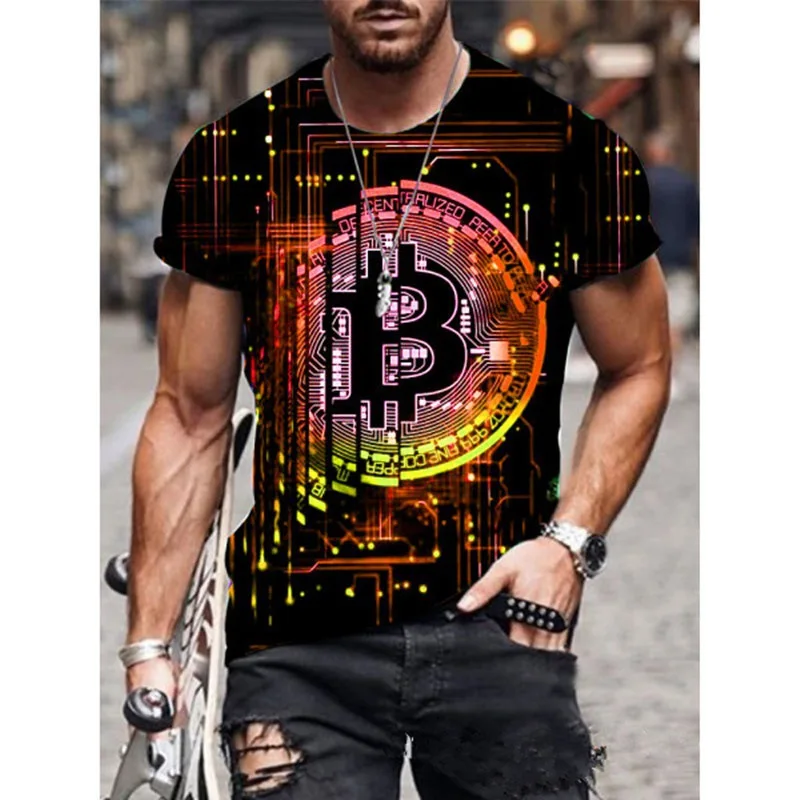 Футболка мужская быстросохнущая, Повседневная рубашка с принтом биткоинов и надписей 3D, уличная одежда, большие размеры, лето