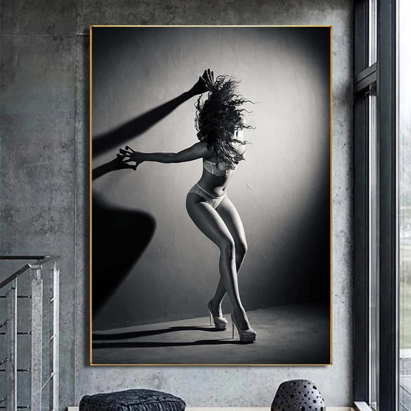 Абстрактная обнаженная женская Картина на холсте черные и белые сов...