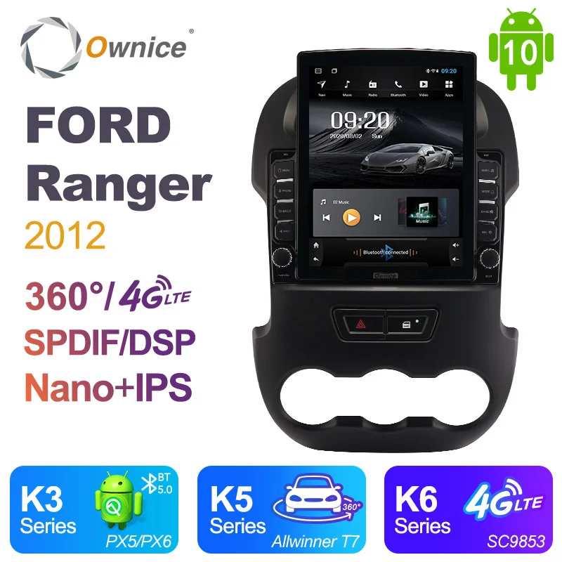 Ownice Android 10,0 для Ford RANGER 2012 автомобильное радио, автомобильное мультимедийное видео, аудио, GPS плеер, головное устройство 360, панорамная DSP PX6