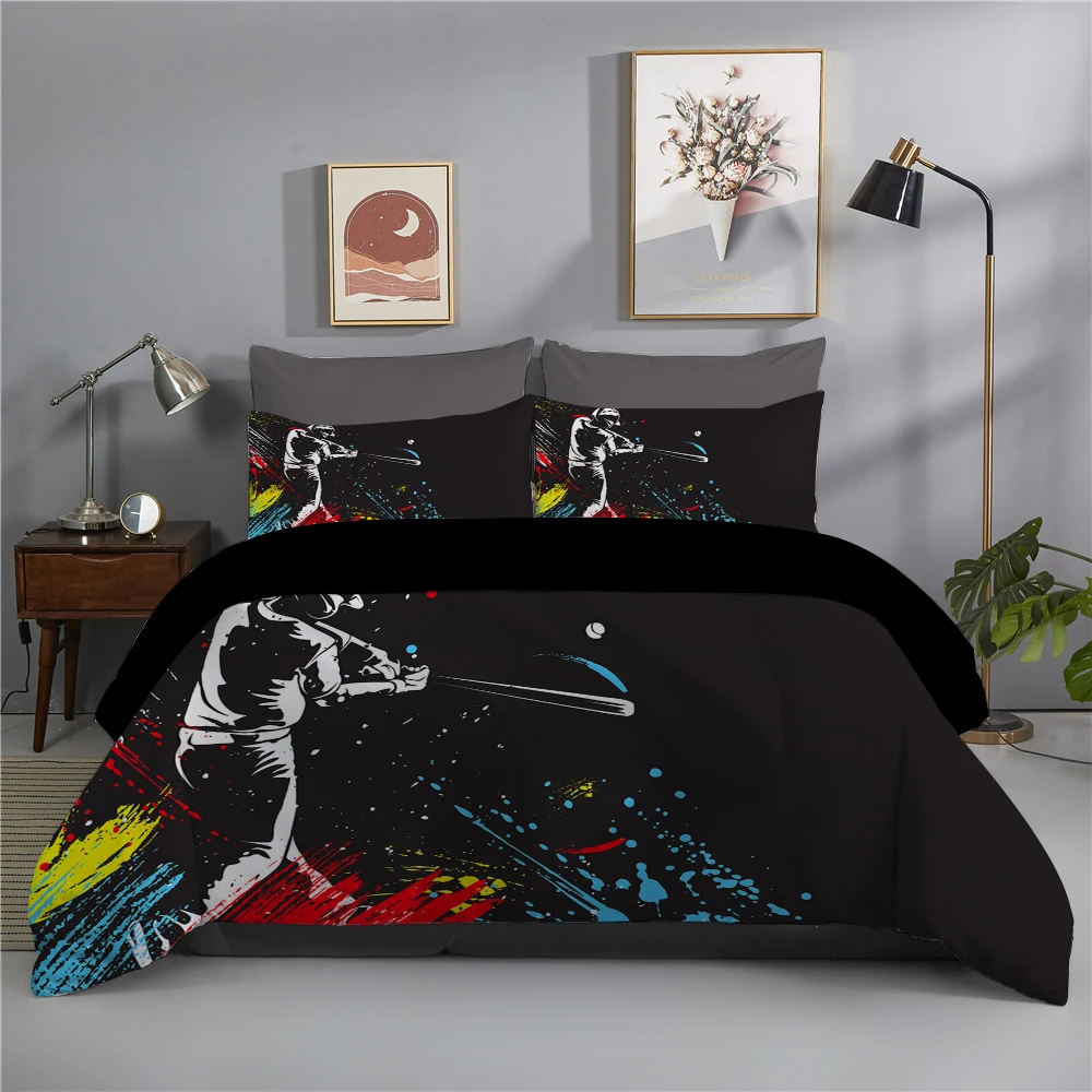 Современный спортивный комплект постельного белья с принтом, бейсбольный комплект с пододеяльником и покрывалом для взрослых, двойная двуспальная наволочка большого размера, домашнее постельное белье