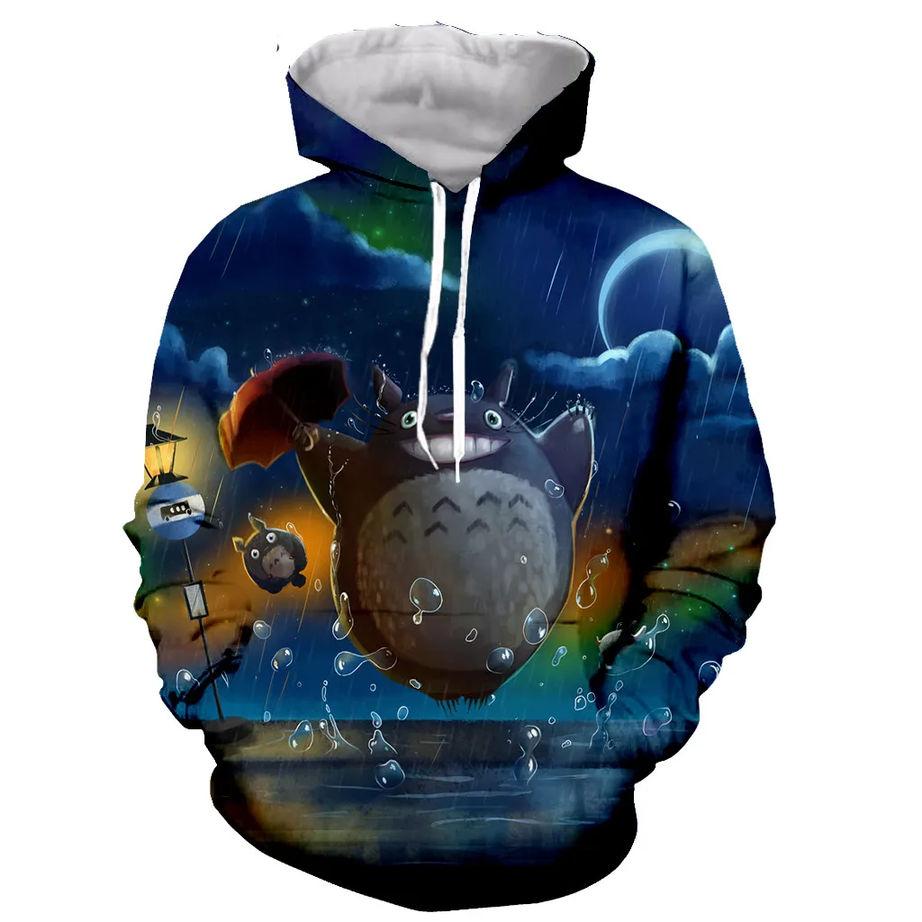 Весна и осень 3D Аниме Мой сосед Тоторо с длинным рукавом Толстовка Повседневная синяя мужская и женская толстовка забавная уличная одежда 2021
