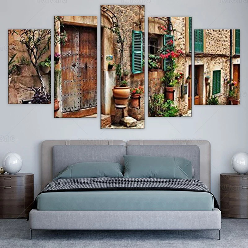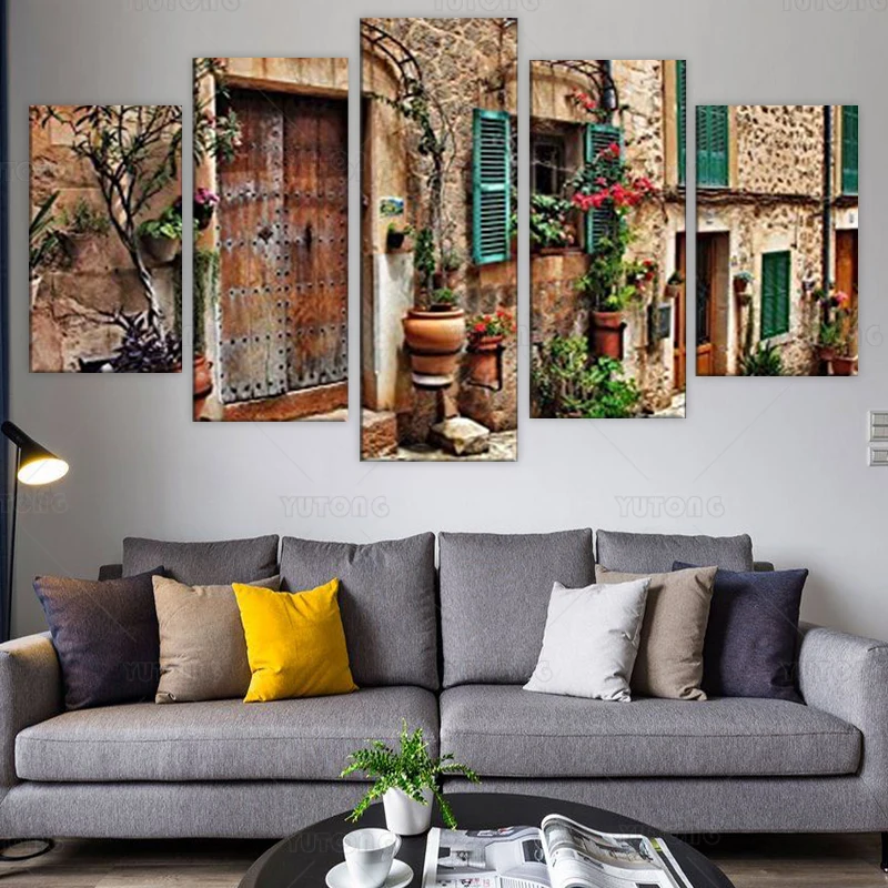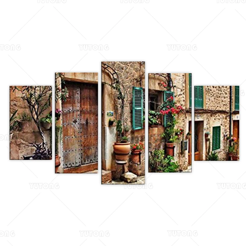 5 панельных настенных картин с изображением улиц Италии Тосканы городов старых средиземноморских дверей окон цветов картина с изображением на холсте