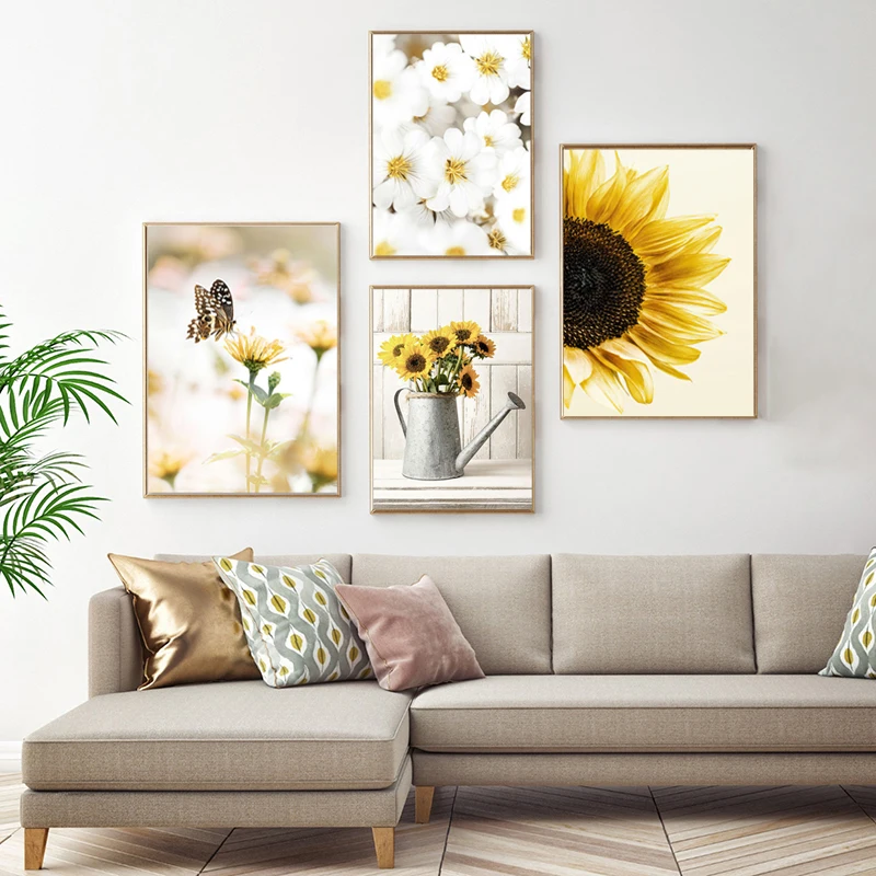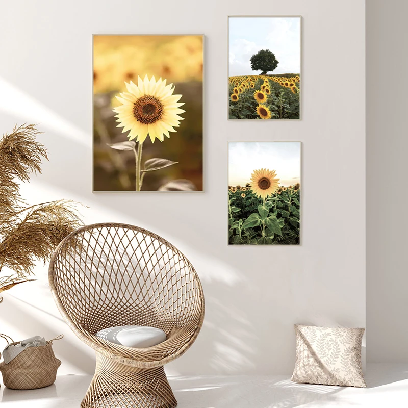 Подсолнуховое поле пейзаж холст спальня современное растение настенный художественный плакат и печать гостиная без рамки картина украшение для дома