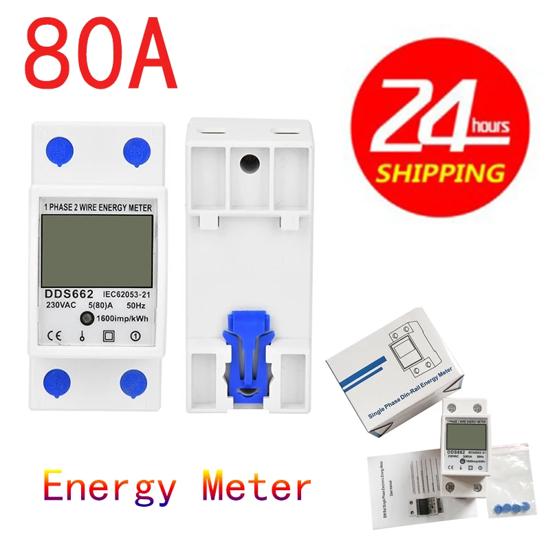 Однофазный двухпроводной анализатор 80 А, ваттметр для электроэнергии, потребляемая мощность, Электрический измеритель кВтч, переменный ток 230 В, Электрический Din-рейка