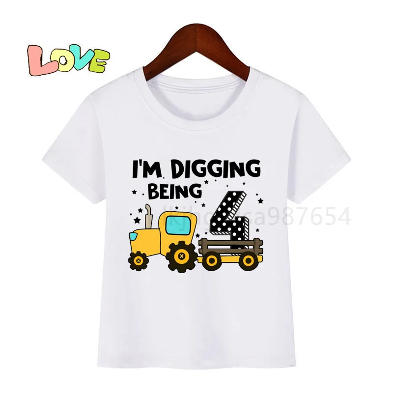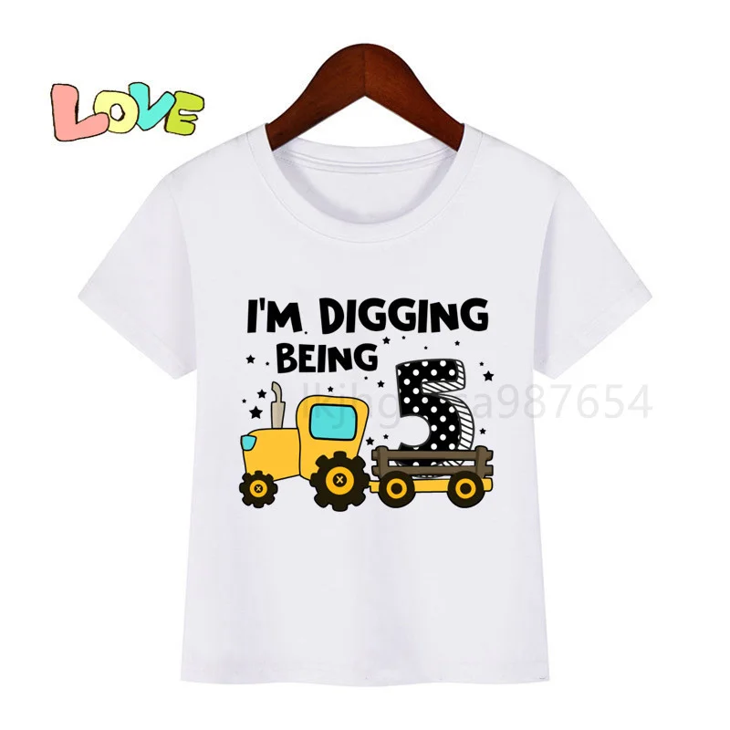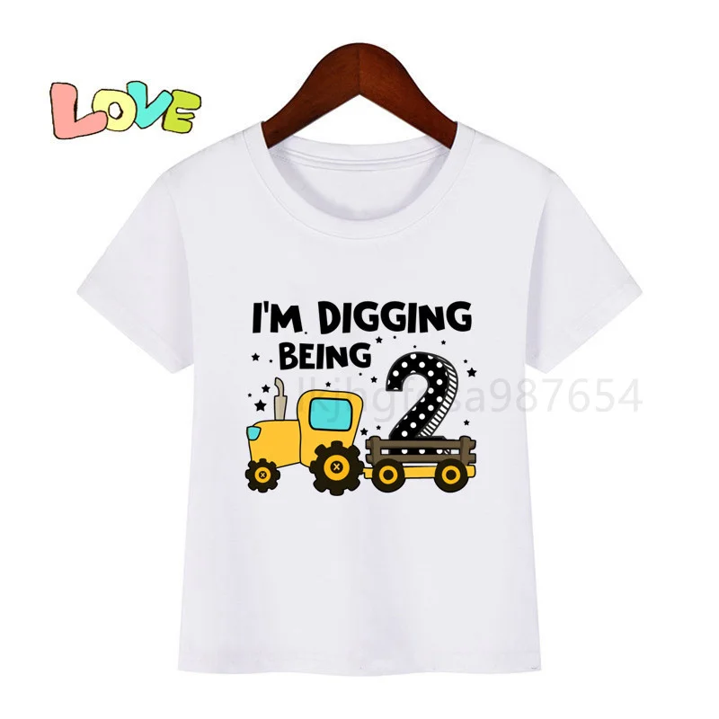 Детская футболка с рисунком экскаватора на день рождения, номер 2-1...