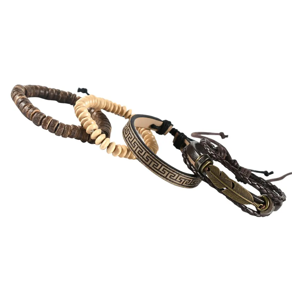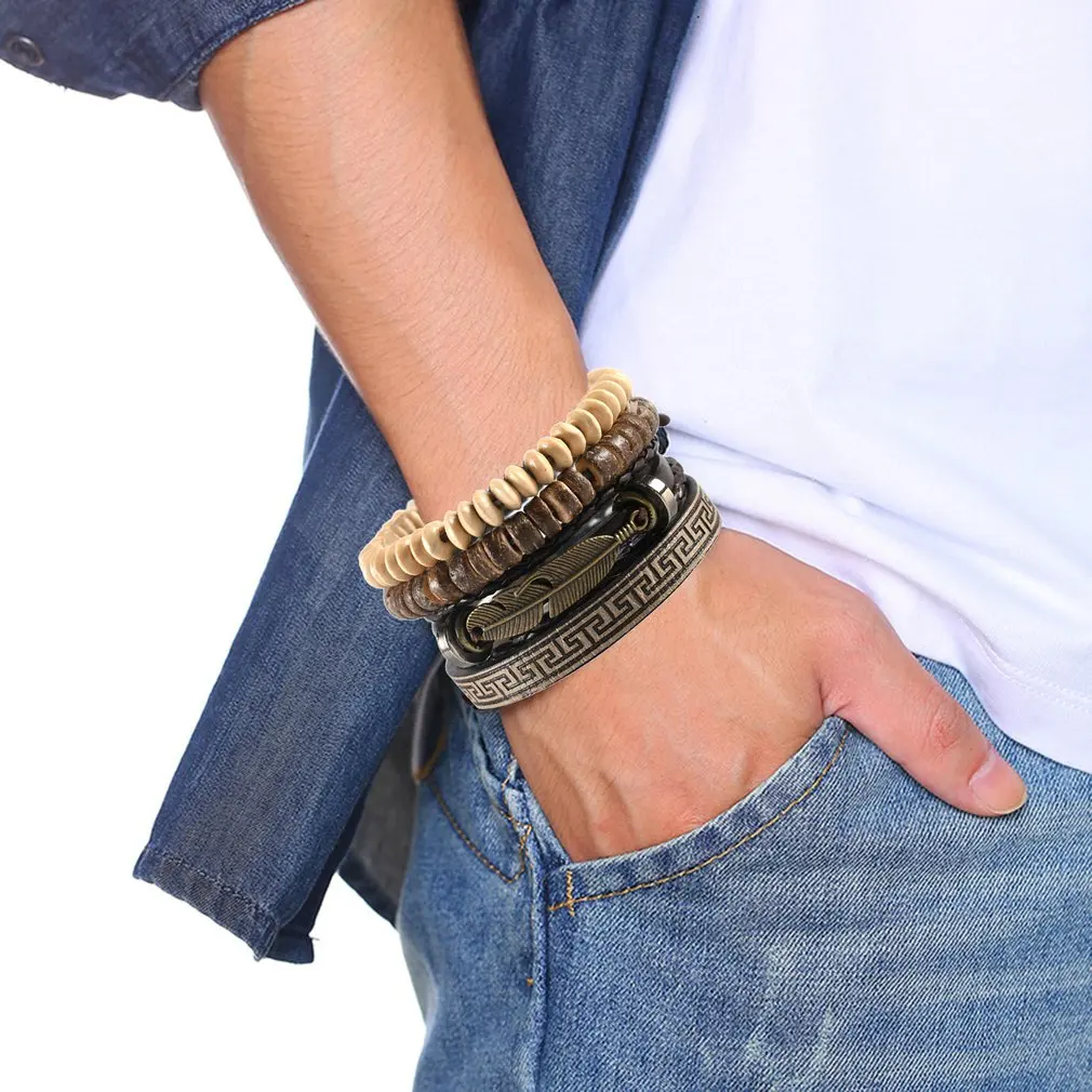 34 шт.компл. Плетеный Обёрточная бумага Кожаные браслеты для Для мужчин Винтаж Древо жизни руль Charm Wood бусины этнический Напульсники